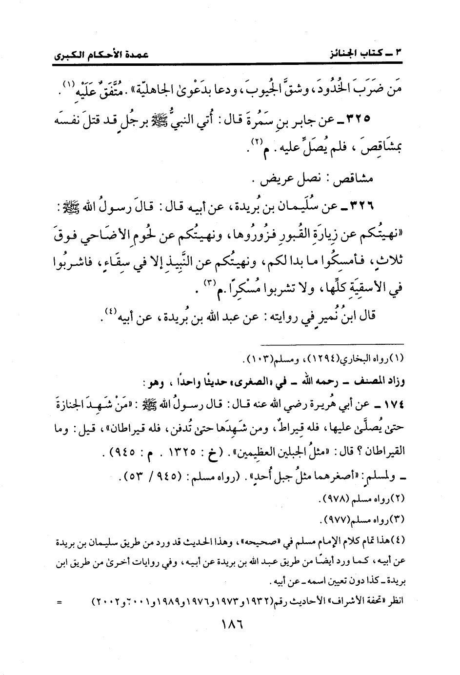 325 - عن جابر بنِ سَمُرةَ قال: أُتي النبيُّ - صلى الله عليه وسلم - برجُلٍ قد قتلَ نفسَه بمشَاقِصَ، فلم يُصَلِّ عليه. م (¬2).