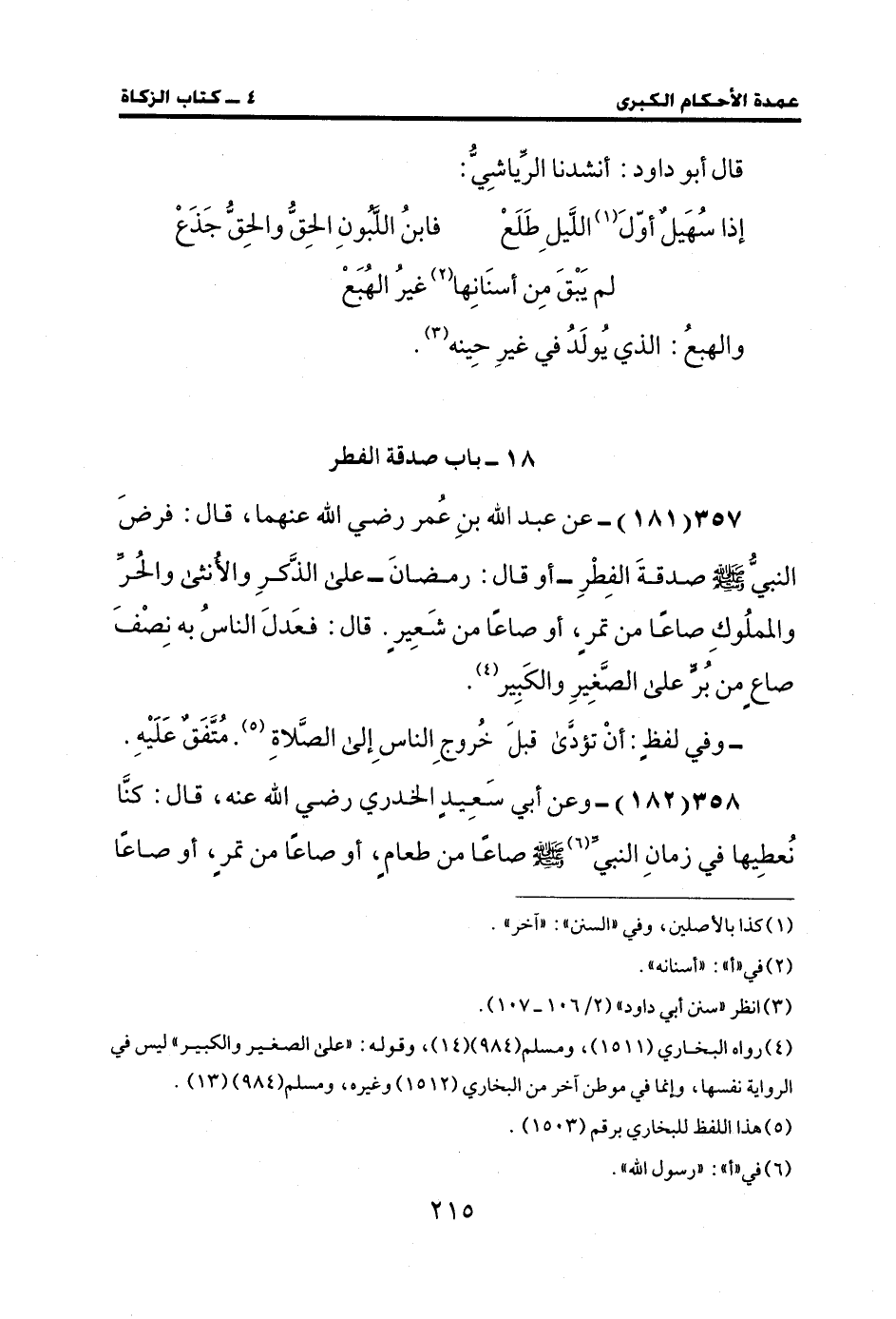 358 (182) - وعن أبي سعيدٍ الخدري رضي الله عنه، قال: كنَّا نُعطِيها في زمانِ النبي (¬6) - صلى الله عليه وسلم - صاعًا من طعام، أو صاعًا من تمر، أو صاعًا