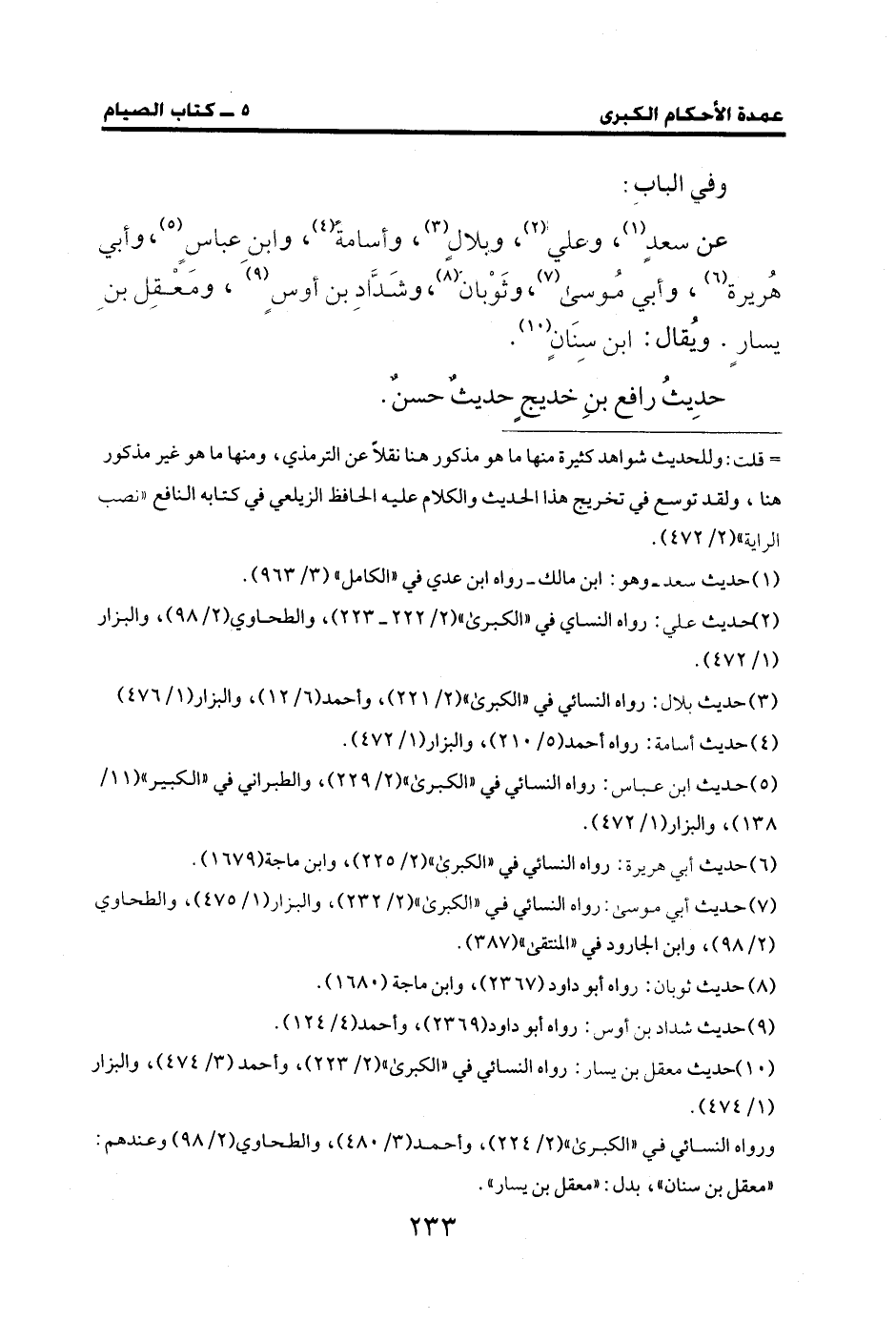 (¬5) حديث ابن عباس: رواه النسائي في "الكبرى" (2/ 229)، والطبراني في "الكبير" (11/ 138)، والبزار (1/ 472).