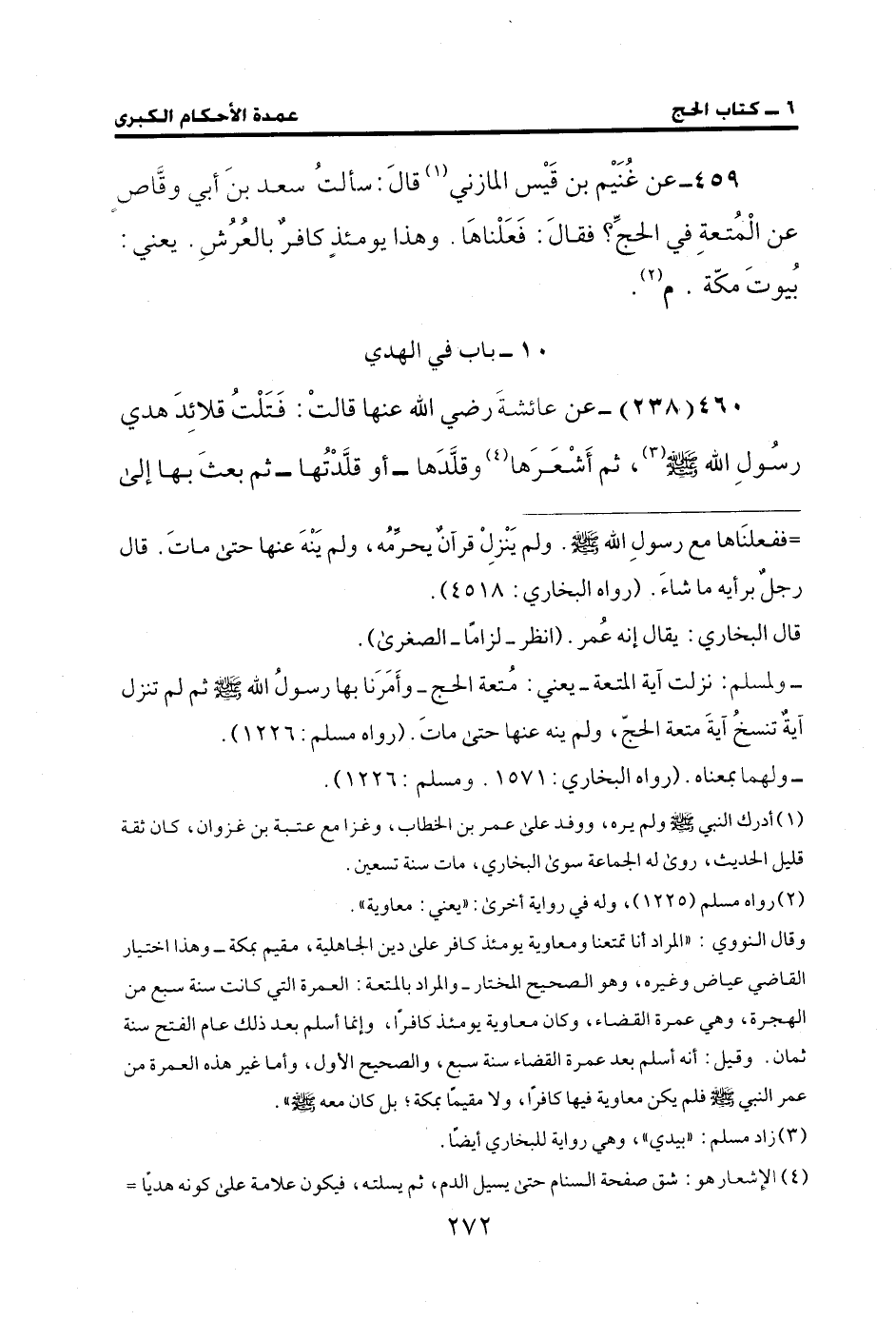 459 - عن غُنَيْم بن قَيْس المازني (¬1) قالَ: سألتُ سعد بنَ أبي وقَّاص عن الْمُتعةِ في الحجِّ؟ فقالَ: فَعَلْناهَا. وهذا يومئذٍ كافرٌ بالعُرُشِ. يعني: بُيوتَ مكّة. م (¬2).