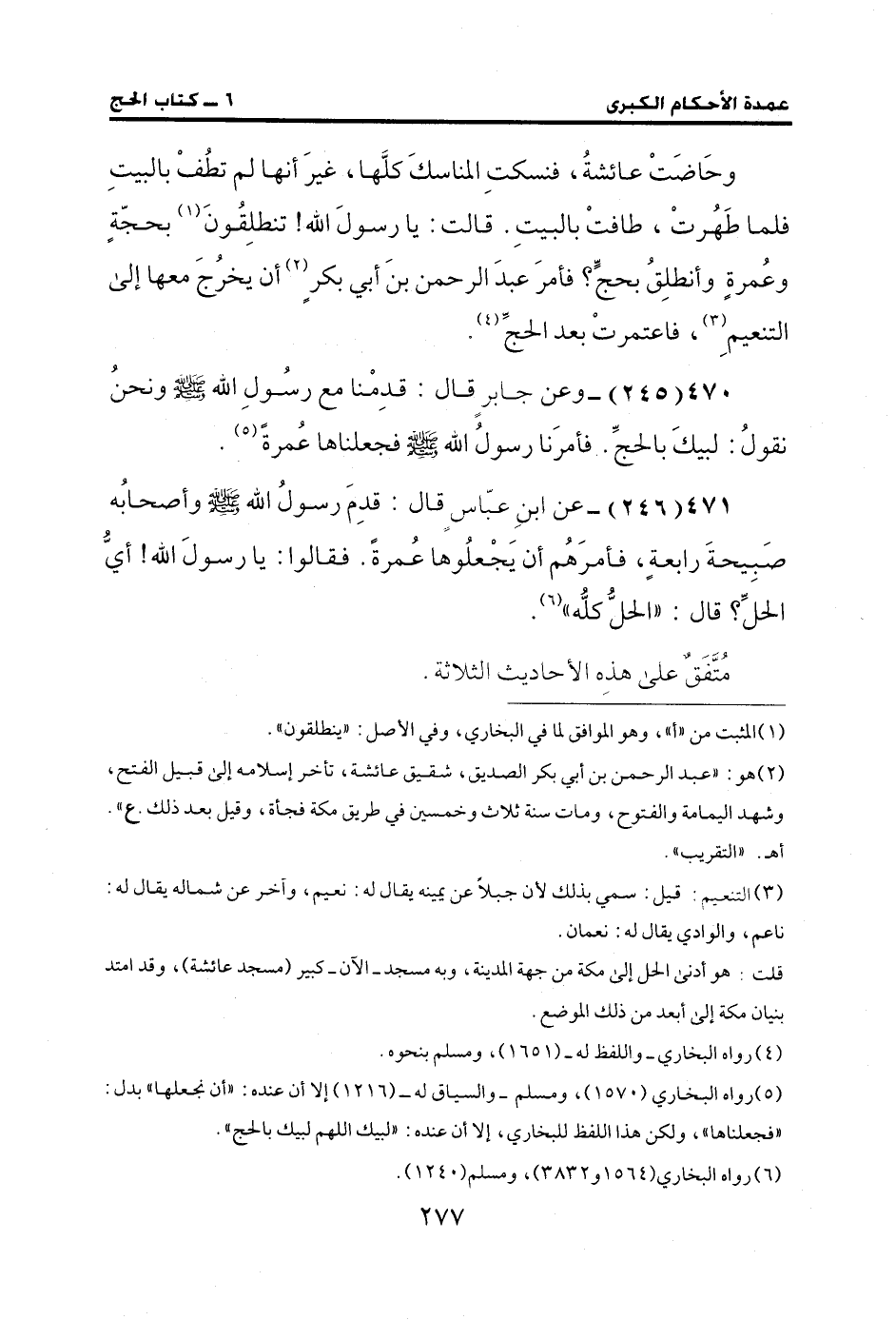 470 (245) - وعن جابرٍ قال: قدِمْنا مع رسُول الله - صلى الله عليه وسلم - ونحنُ نقولُ: لبيكَ بالحجِّ. فأمرَنا رسولُ الله - صلى الله عليه وسلم - فجعلناها عُمرةً (¬5).