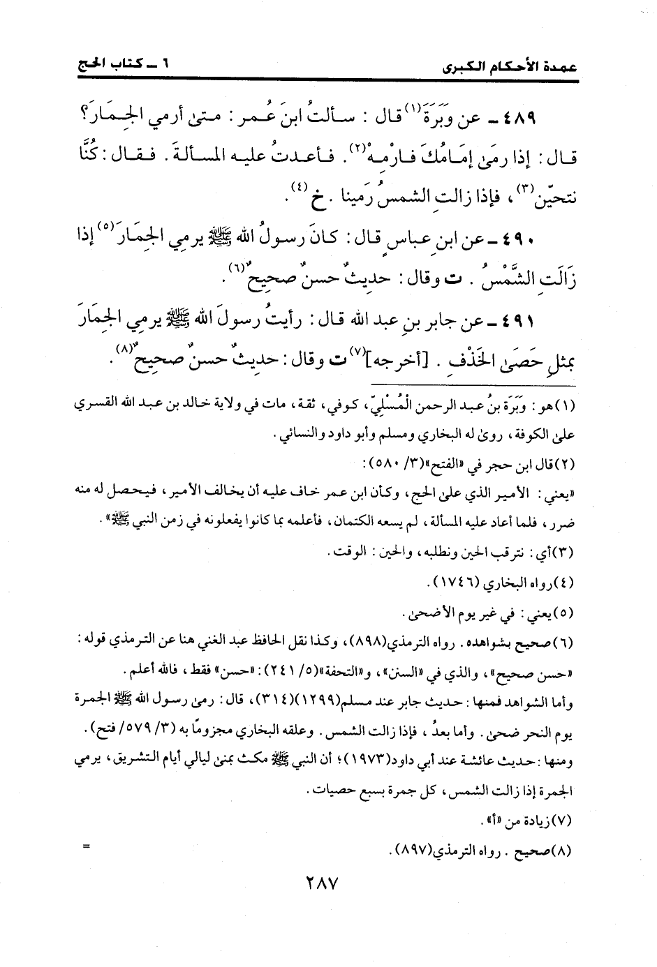 490 - عن ابنِ عباس قال: كانَ رسولُ الله - صلى الله عليه وسلم - يرمِي الجِمَارَ (¬5) إذا زَالَتِ الشَّمْسُ. ت وقال: حدِيث حسن صحِيحٌ (¬6).