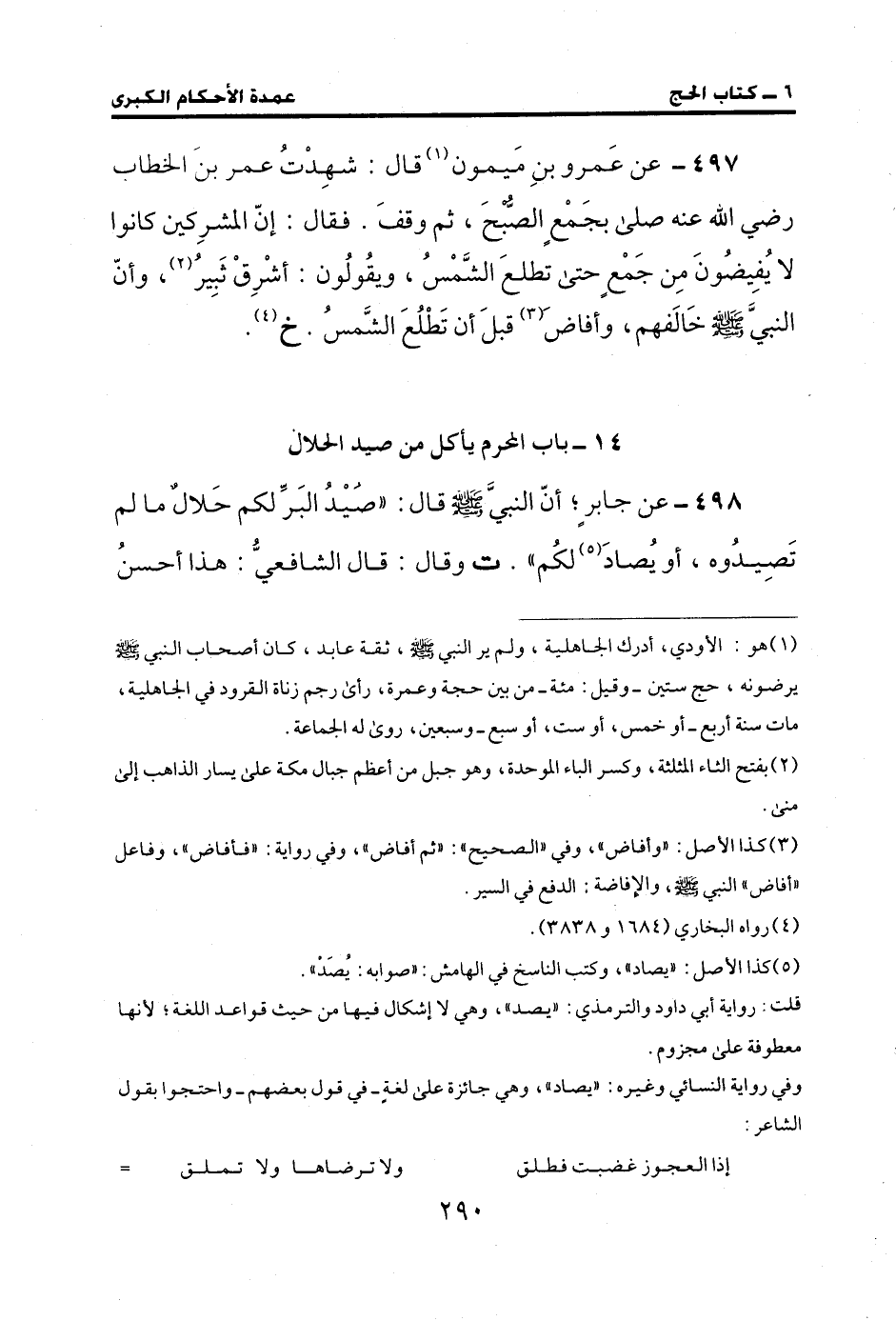 497 - عن عَمرو بنِ مَيمون (¬1) قال: شهِدْتُ عمر بنَ الخطاب رضي الله عنه صلى بجَمْع الصُّبحَ، ثم وقفَ. فقال: إنّ المشرِكين كانوا لا يُفِيضونَ مِن جَمْعٍ حتى تطلعَ الشَّمس، ويقولون: أشْرِقْ ثَبِير (¬2)، وأنّ النبيَّ - صلى الله عليه وسلم - خَالَفهم، وأفاض (¬3) قبلَ أن تَطْلعَ الشَّمس. خ (¬4).