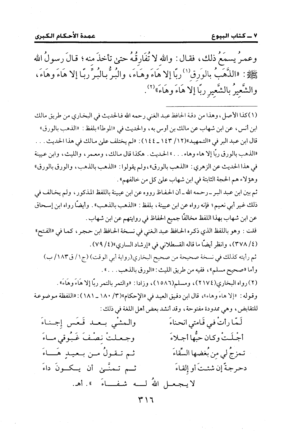 وعمرُ يسمَعُ ذلك، فقال: واللهِ لا تُفارِقُهُ حتى تأخذَ منه؛ قَالَ رسولُ الله - صلى الله عليه وسلم -: "الذهبُ بالوَرِقِ (¬1) ربًا إلا هاءَ وهاءَ، والبُرُّ بالبُرًّ ربًا إلا هاءَ وهاءَ، والشَّعِيرُ بالشَّعِيرِ ربًا إلا هاءَ وهاءَ" (¬2).