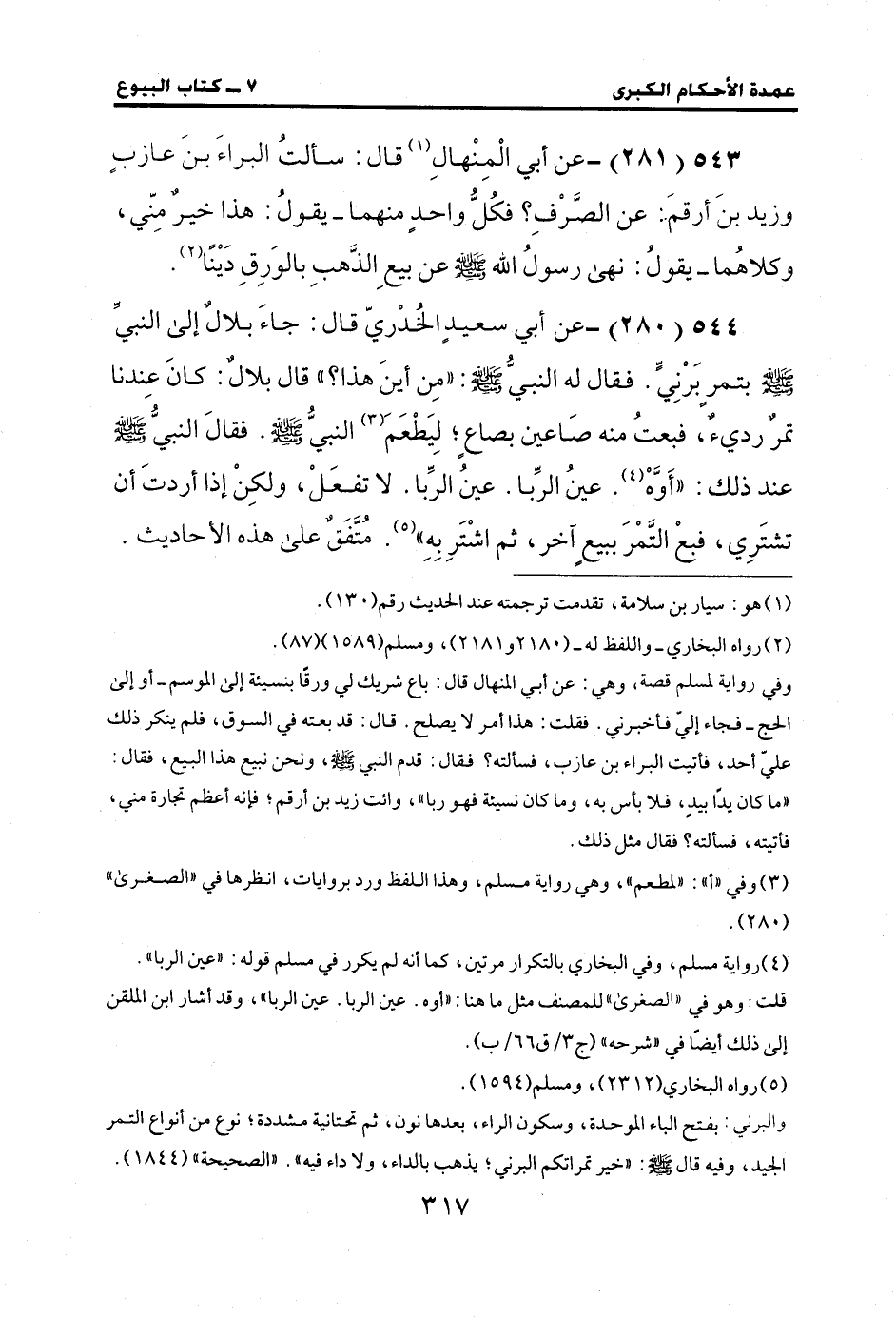 543 (281) - عن أبي الْمِنْهالِ (¬1) قال: سألتُ البراءَ بنَ عازبٍ وزيد بنَ أرقم: عن الصَرفِ؟ فكُلُّ واحد منهما -يقولُ: هذا خيرٌ مِنّي، وكلاهُما -يقولُ: نهى رسولُ الله - صلى الله عليه وسلم - عن بيعِ الذهبِ بالوَرِقِ دَيْنًا (¬2).
