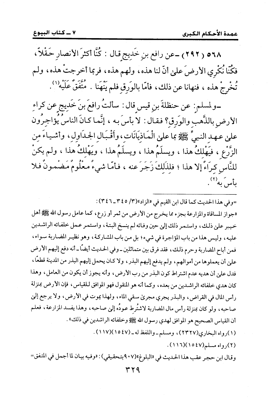 568 (292) - عن رافع بنِ خَدِيجٍ قال: كُنَّا أكثرَ الأنصارِ حَقْلًا، فكنا نُكْرِي الأرضَ على أنّ لنا هذه، ولهم هذه، فربما أخرجتْ هذه، ولم تُخْرجْ هذه، فنهانا عن ذلك، فأمّا بالوَرِقِ فلم يَنْهَنا. مُتَّفَقٌ عَلَيْه (¬1).