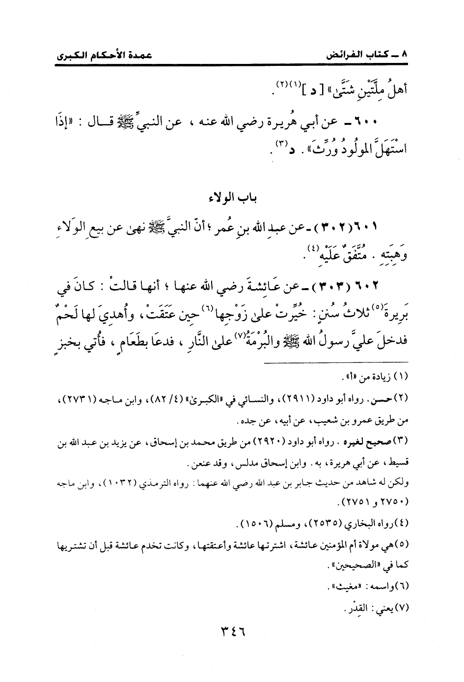 601 (302) - عن عبدِ الله بنِ عُمر؛ أنّ النبيَّ - صلى الله عليه وسلم - نهى عن بيعِ الوَلاءِ وَهِبَتِهِ. مُتَّفَقٌ عَلَيْهِ (¬4).
