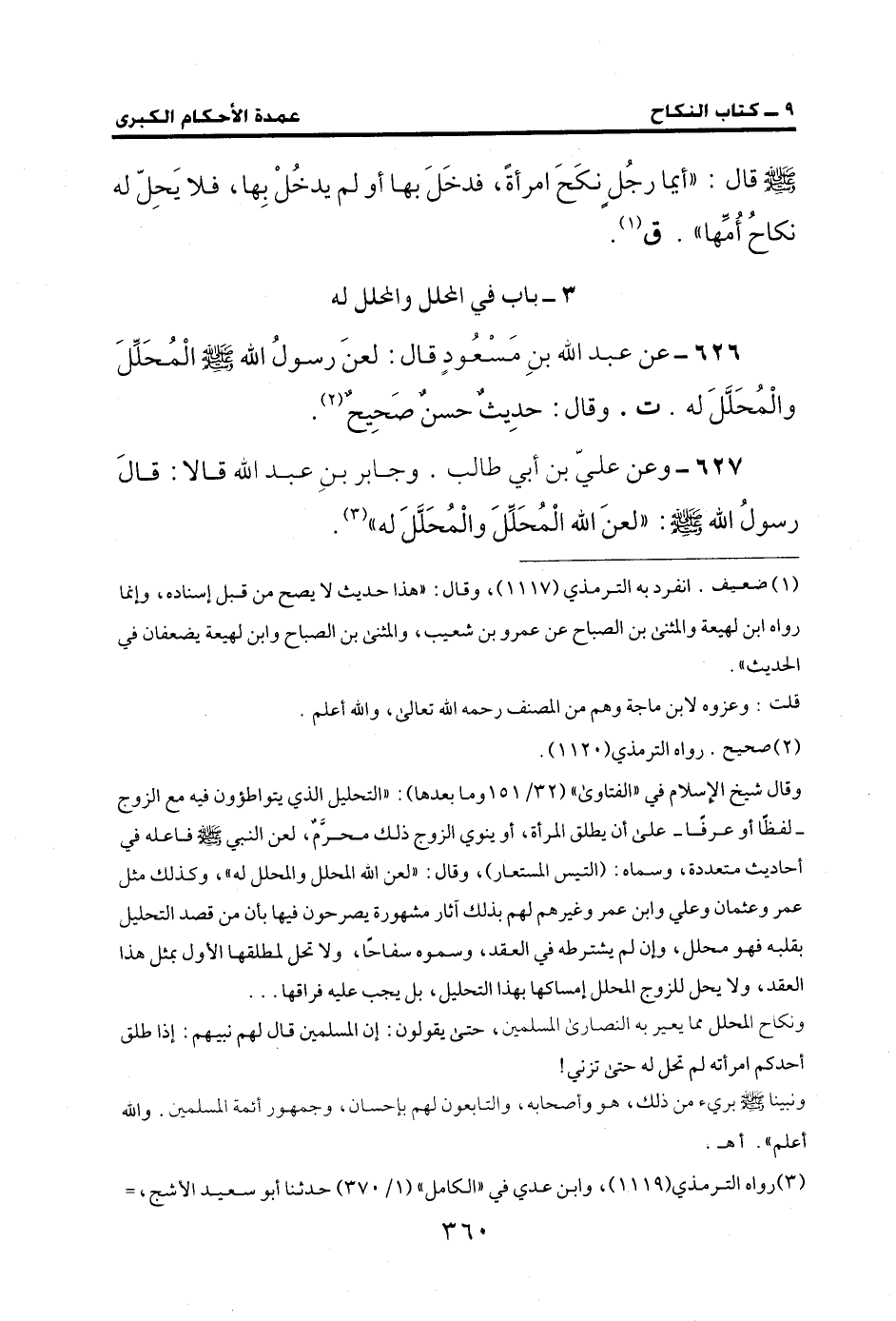 626 - عن عبد الله بنِ مَسْعُودٍ قال: لعنَ رسولُ الله - صلى الله عليه وسلم - الْمُحَلِّلَ والْمحَلَّلَ له. ت. وقال: حدِيثٌ حسنٌ صَحِيحٌ (¬2).