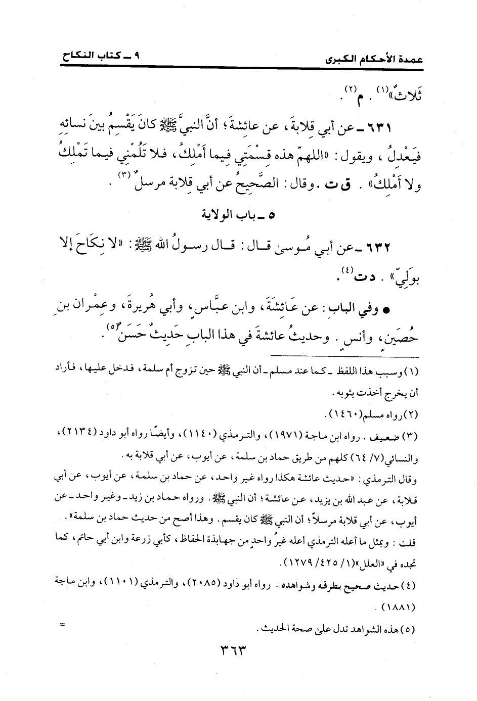 631 - عن أبي قِلابةَ، عن عائِشةَ؛ أنَّ النبيَّ - صلى الله عليه وسلم - كانَ يَقْسِمُ بينَ نسائِهِ فيَعْدِلُ، ويقول: "اللهمّ هذه قِسْمَتِي فِيما أَمْلِكُ، فلا تَلُمْنِي فيما تَمْلِكُ ولا أَمْلِكُ". ق ت. وقال: الصَّحِيحُ عن أبي قِلابة مرسلٌ (¬3).
