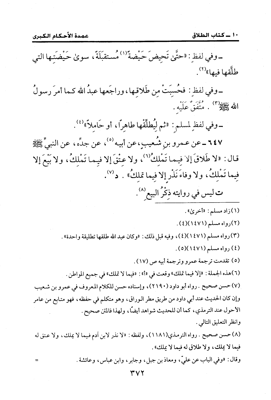 647 - عن عمرو بنِ شُعيب، عن أبيه (¬5)، عن جدِّه، عن النبيِّ - صلى الله عليه وسلم - قال: "لا طَلاق إلا فِيما تَمْلِكُ (¬6)، ولا عِتْقَ إلا فيِما تَمْلِكُ، ولا بَيْعَ إلا فِيما تَمْلِكُ، ولاوفاءَ نَذْرٍ إلا فِيما تملِكُ". د (¬7).