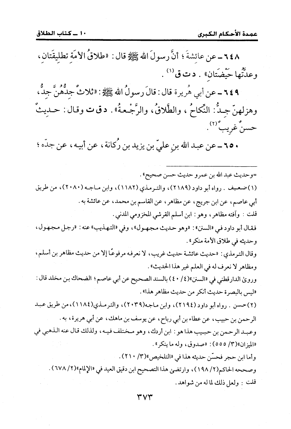 649 - عن أبي هُريرة قال: قالَ رسولُ الله - صلى الله عليه وسلم -: "ثلاثٌ جِدُّهُنَّ جِدُّ، وهزلهنّ جِدُّ: النكاحُ، والطَّلاقُ، والرَّجْعةُ". د ق ت وقال: حدِيثٌ حسنٌ غرِيبٌ (¬2)