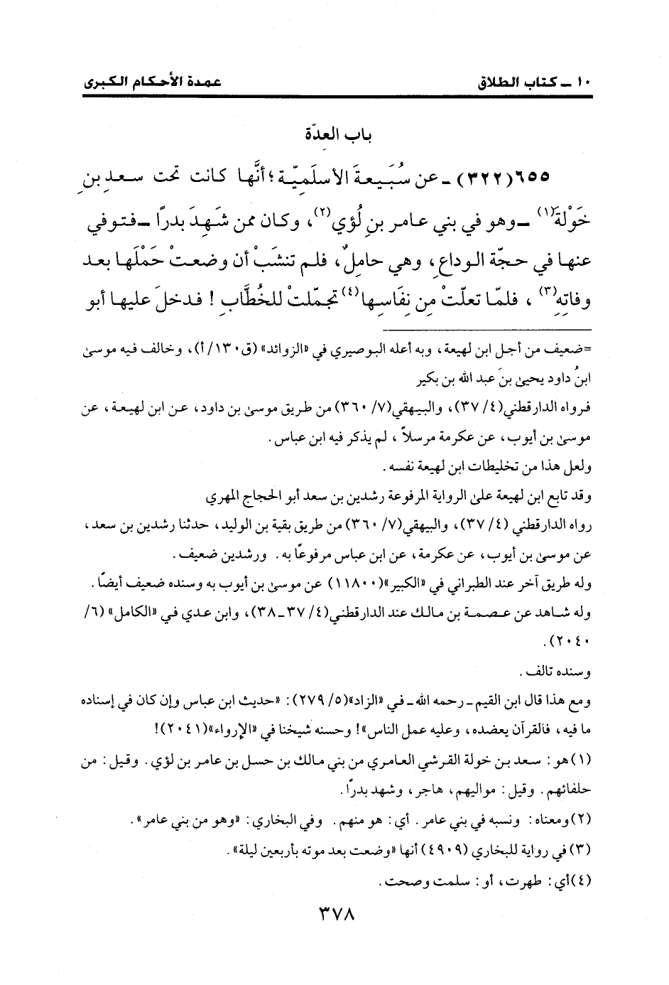 655 (322) - عن سُبَيعةَ الأسلَمِيّة؛ أنَّها كانت تحت سعدِ بن خَوْلةَ (¬1) - وهو في بني عامر بنِ لُؤي (¬2)، وكان ممن شَهِدَ بدرًا- فتوفي عنها في حجّة الوداع، وهي حامِلٌ، فلم تنشَبْ أن وضعتْ حَمْلَها بعد وفاتِهِ (¬3)، فلما تعلّتْ مِن نِفَاسِها (¬4) تجمّلتْ للخُطَّابِ! فدخلَ عليها أبو