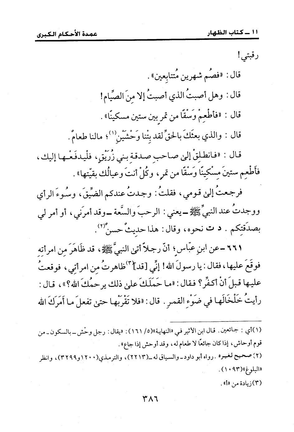 661 - عن ابنِ عبّاسٍ؛ أنّ رجلًا أتى النبيَّ - صلى الله عليه وسلم -، قد ظَاهَرَ مِن امرأتِهِ فوقَعَ عليها، فقال: يا رسولَ الله! إنِّي [قد] (¬3) ظاهرتُ مِن امرأتِي، فوقعت عليها قبلَ أنْ أكفِّر؟ فقال: "ما حَمَلَكَ علي ذلك يرحمُكَ الله؟ "، قال: رأيتُ خَلْخَالَها في ضَوْءِ القمرِ. قال: "فلا تَقْرَبْها حتى تفعلَ ما أَمَرَكَ الله