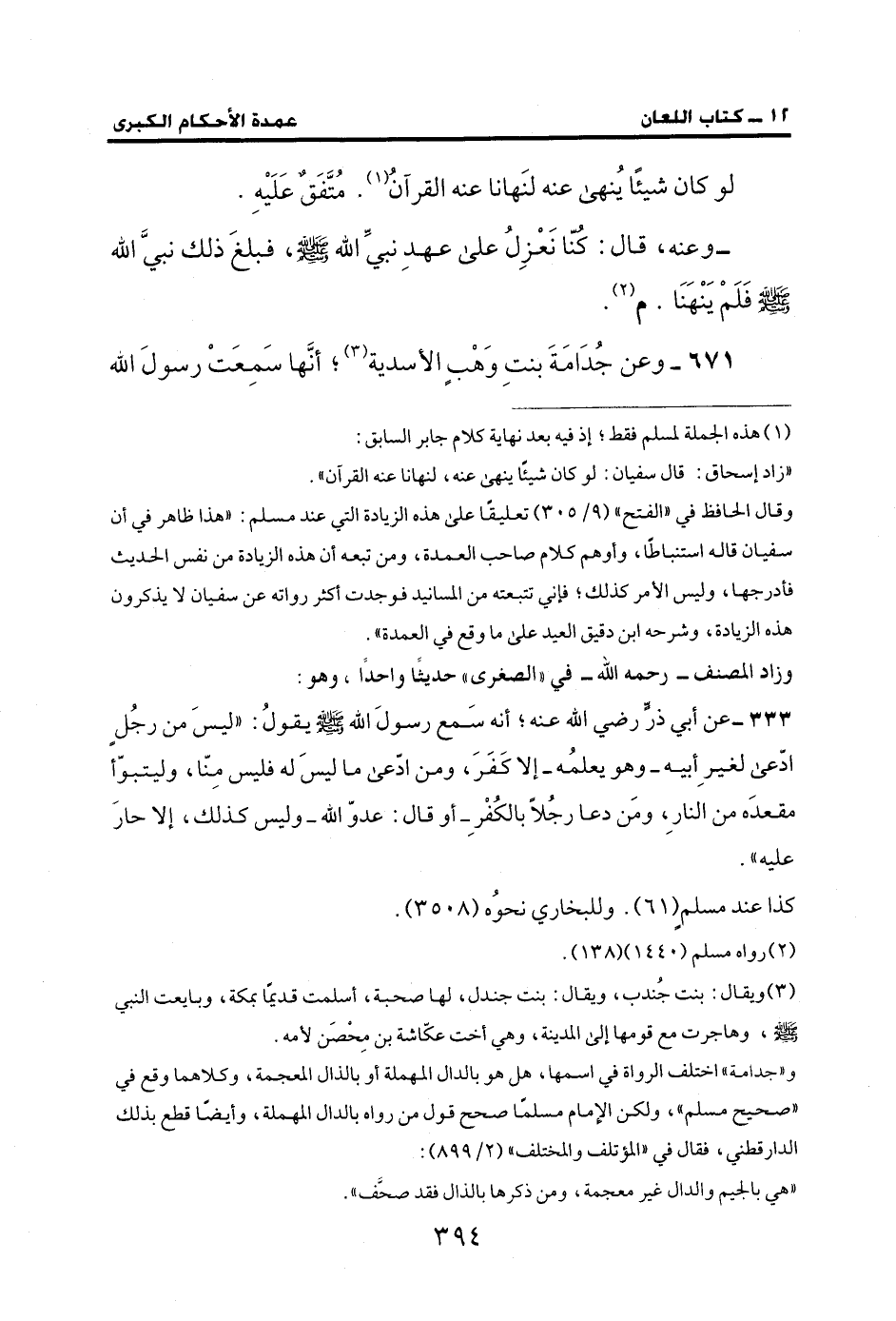 671 - وعن جُدَامَةَ بنتِ وَهْبٍ الأسدية (¬3)؛ أنَها سَمِعَتْ رسولَ الله