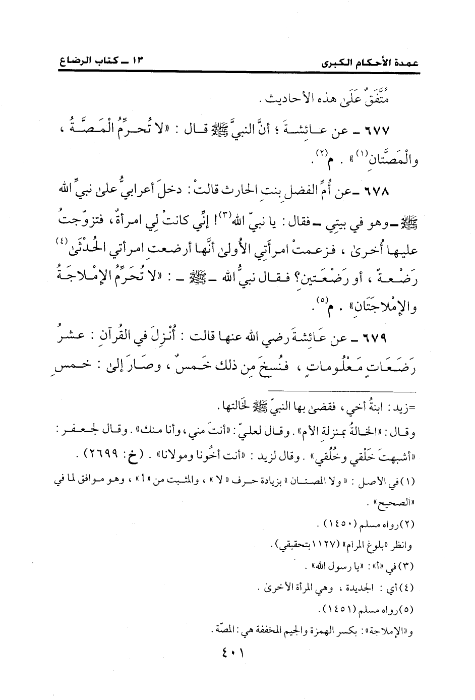678 - عن أُمِّ الفضلِ بنتِ الحارث قالتْ: دخلَ أعرابيُّ علي نبيِّ الله - صلى الله عليه وسلم - وهو في بيتِي - فقال: يا نبيّ الله (¬3)! إنِّي كانتْ لِي امرأةٌ، فتزوّجتُ عليها أُخرى، فزعمتْ امرأَتِي الأُولى أنَّها أرضعتِ امرأتي الحُدْثَى (¬4) رَضْعةً، أو رَضْعَتين؟ فقال نبيُّ الله - صلى الله عليه وسلم -: "لا تُحَرِّمُ الإِمْلاجَةُ والإِمْلاجَتَانِ". م (¬5).