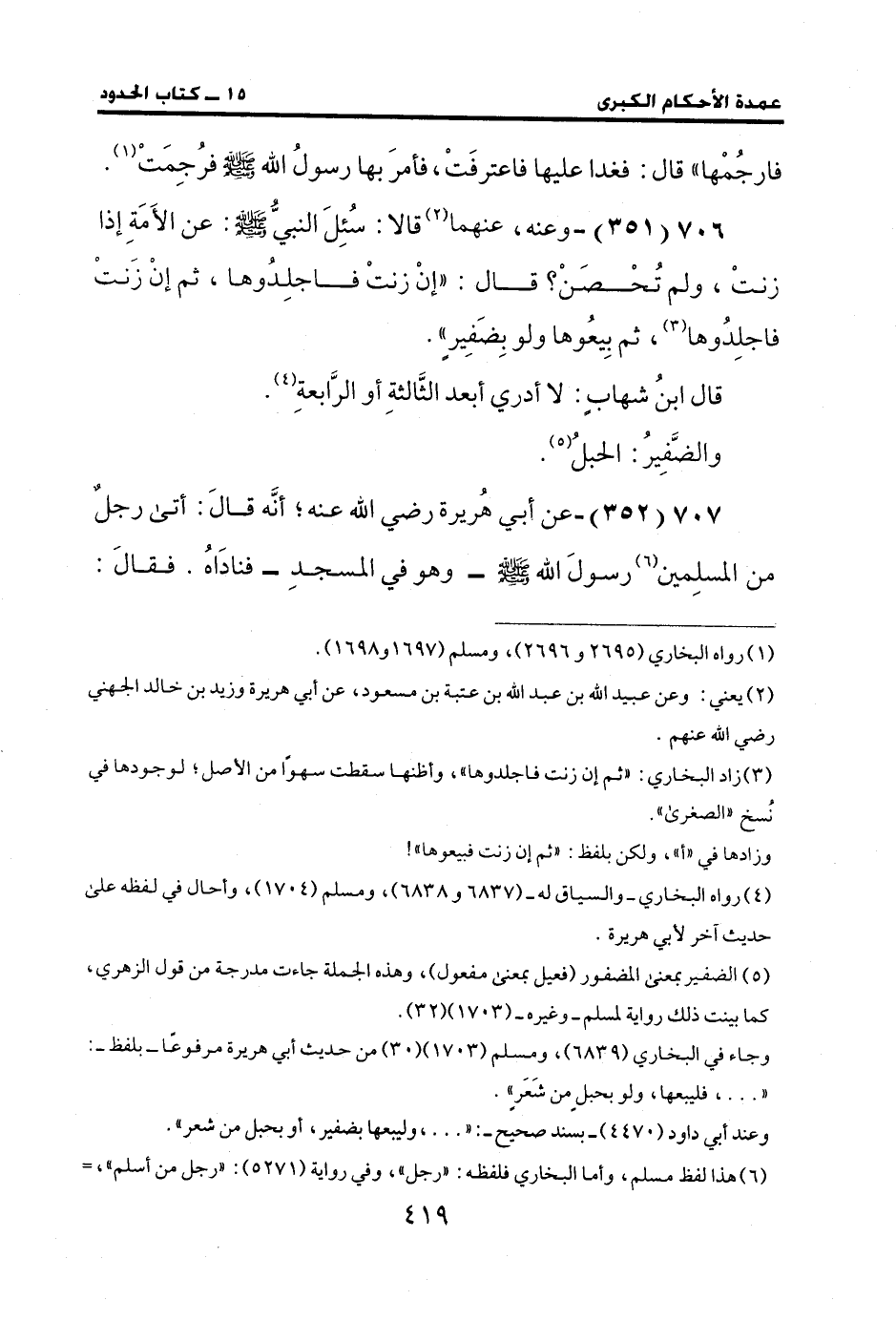 706 (351) - وعنه، عنهما (¬2) قالا: سُئِلَ النبيُّ - صلى الله عليه وسلم -: عن الأَمَةِ إذا زنتْ، ولم تُحْصَنْ؟ قال: "إنْ زنتْ فاجلِدُوها، تم إنْ زَنتْ فاجلِدُوها (¬3)، ثم بِيعُوها ولو بِضَفِيرٍ".