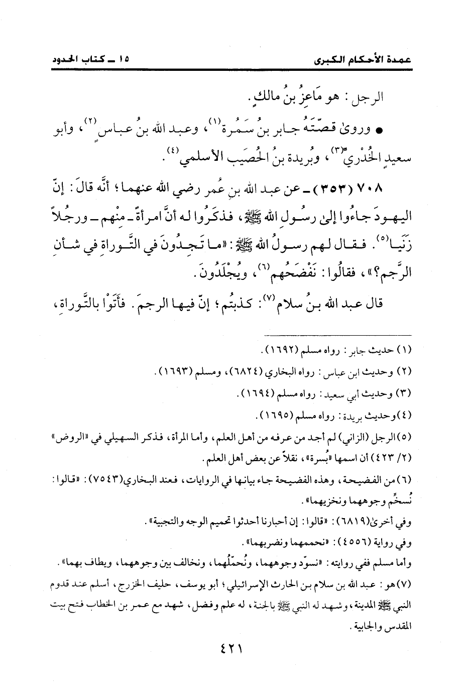 (¬7) هو: عبد الله بن سلام بن الحارث الإسرائيلي؛ أبو يوسف، حليف الخزرج، أسلم عند قدوم النبي - صلى الله عليه وسلم - المدينة، وشهد له النبي - صلى الله عليه وسلم - بالجنة، له علم وفضل، شهد مع عمر بن الخطاب فتح بيت المقدس والجابية.