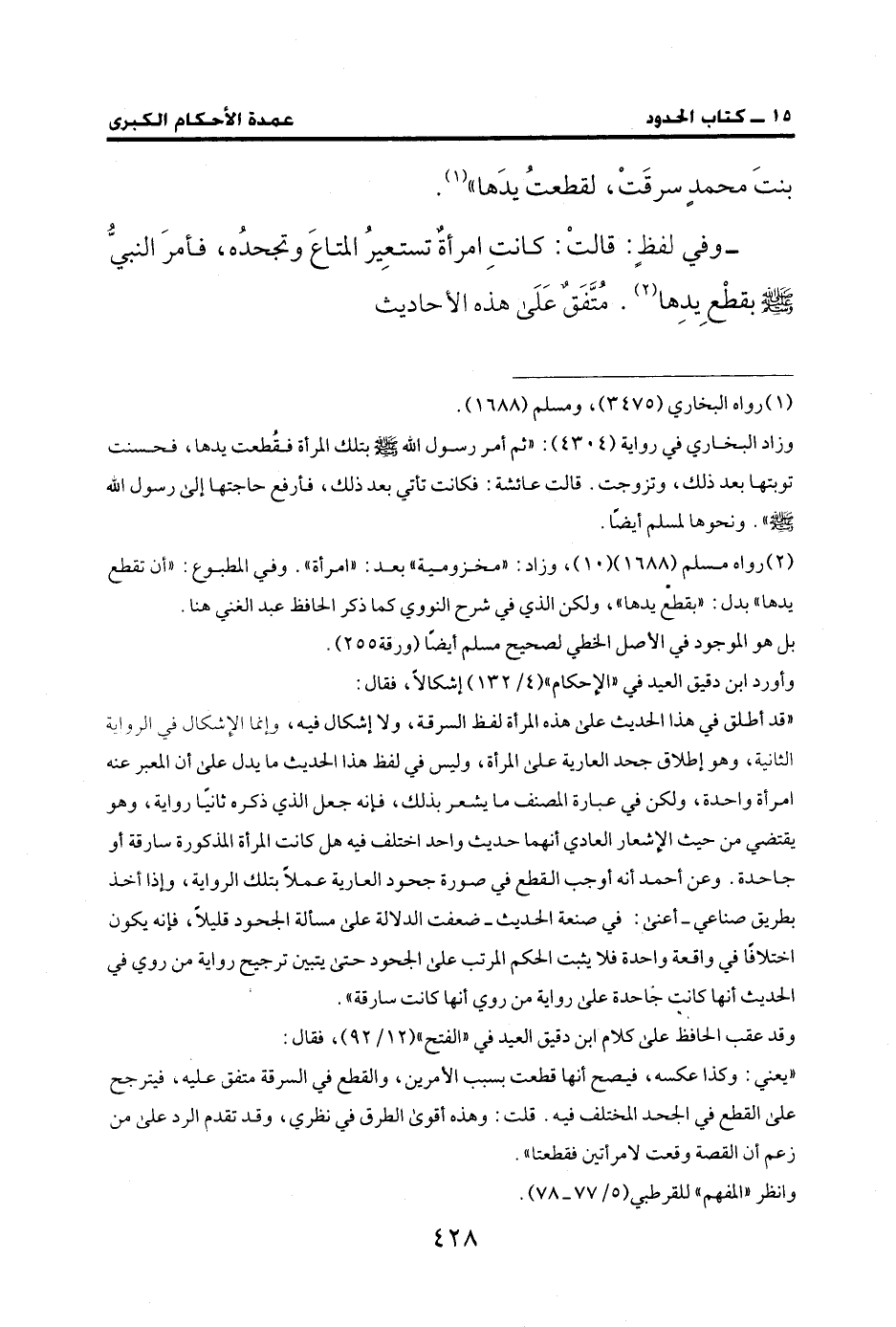(¬2) رواه مسلم (1688) (10)، وزاد: "مخزومية" بعد: "امرأة". وفي المطبوع: "أن تقطع يدها" بدل: "بقطعْ يدها"، ولكن الذي في شرح النووي كما ذكر الحافظ عبد الغني هنا.