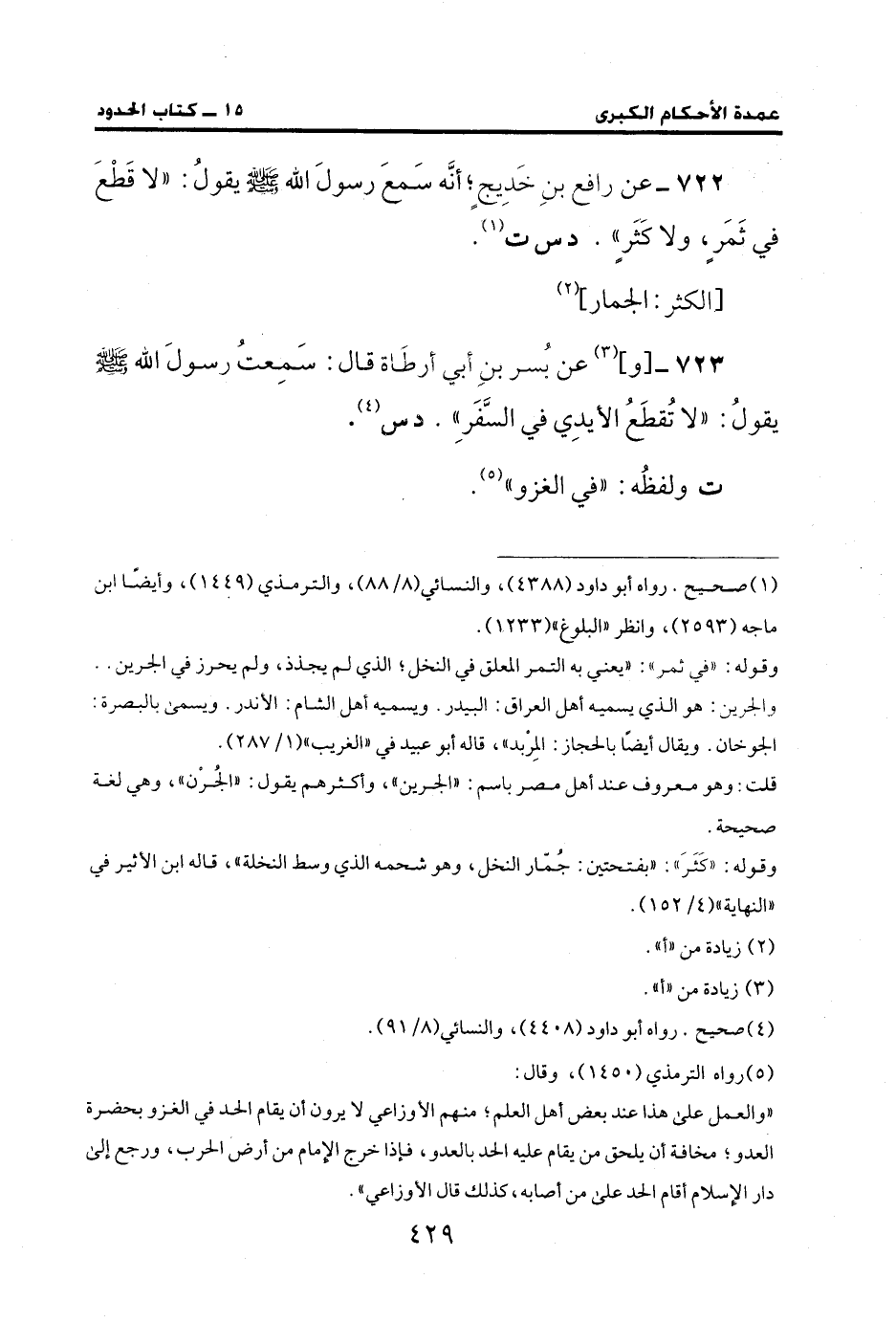 723 - [و] (¬3) عن بسر بن أبي أرطاة قال: سَمِعتُ رسولَ الله - صلى الله عليه وسلم - يقولُ: "لا تُقطَعُ الأيدِي في السفَر". د س (¬4).