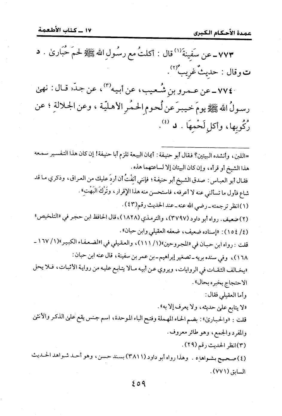 773 - عن سَفِينةَ (¬1) قال: أكلتُ مع رسُولِ الله - صلى الله عليه وسلم - لحمَ حُبَارى. د ت وقال: حدِيثٌ غرِيب (¬2).