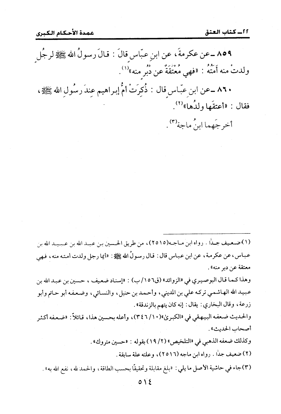860 - عن ابنِ عبّاسٍ قال: ذُكِرَتْ أمُّ إبراهيم عِندَ رسُولِ الله- صلى الله عليه وسلم -، فقال: "أعتقَها ولدُها" (¬2).