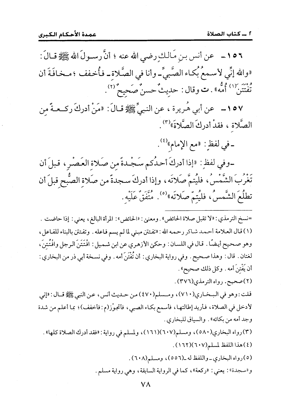 156 - عن أنس بنِ مَالكٍ رضي الله عنه؛ أنَّ رسولَ الله - صلى الله عليه وسلم - قالَ: "والله إنِّي لأسمعُ بُكاء الصَّبيِّ - وأنا في الصَّلاةِ - فأُخفف؛ مخافَةَ أن تُفْتَتَنَ (¬1) أُمُّه"، ت وقال: حدِيثٌ حسنٌ صَحِيحٌ (¬2).