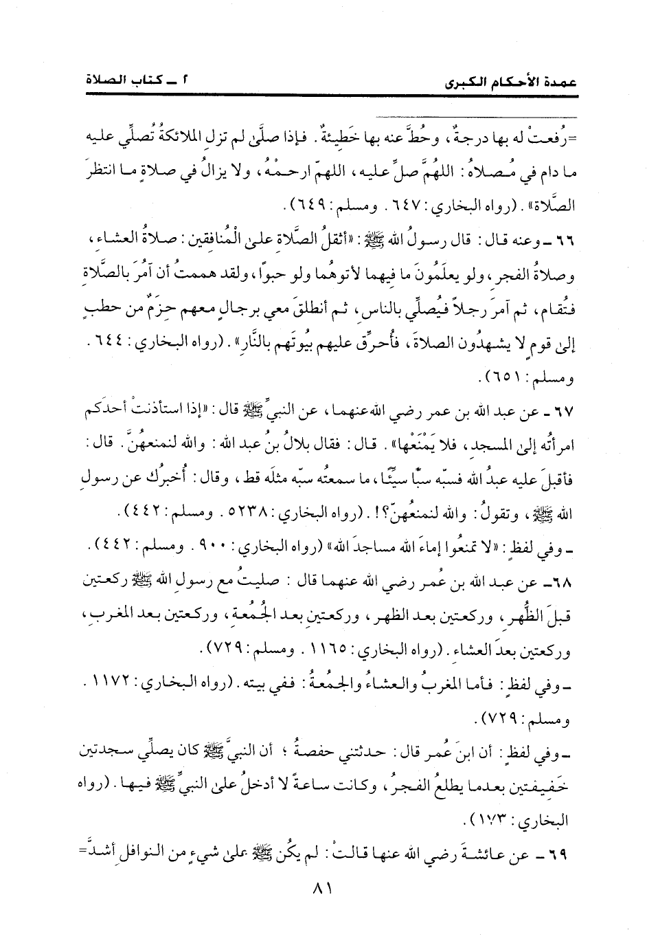 68 - عن عبد الله بن عُمر رضي الله عنهما قال: صليتُ مع رسولِ الله - صلى الله عليه وسلم - ركعتين قبلَ الظُّهر، وركعتين بعد الظهر، وركعتينِ بعد الجُمُعةِ، وركعتين بعد المغربِ، وركعتين بعدَ العشاءِ. (رواه البخاري: 1165. ومسلم: 729).