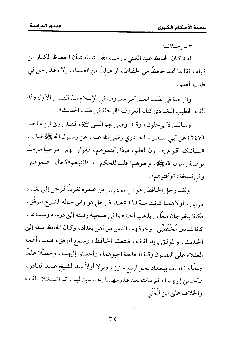 لقد كان الحافظ عبد الغني- رحمه الله- شأنه شأن الحفاظ الكبار من قبله، فقلما تجد حافظًا من الحفاظ، أو عالِمًا من العلماء، إلا وقد رحل في طلب العلم.