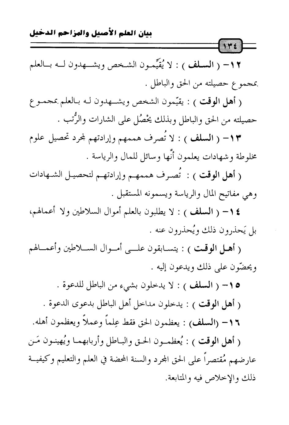 14 - (السلف): لا يطلبون بالعلم أموال السلاطين ولا أعمالهم، بل يَحذرون ذلك ويُحذرون عنه.