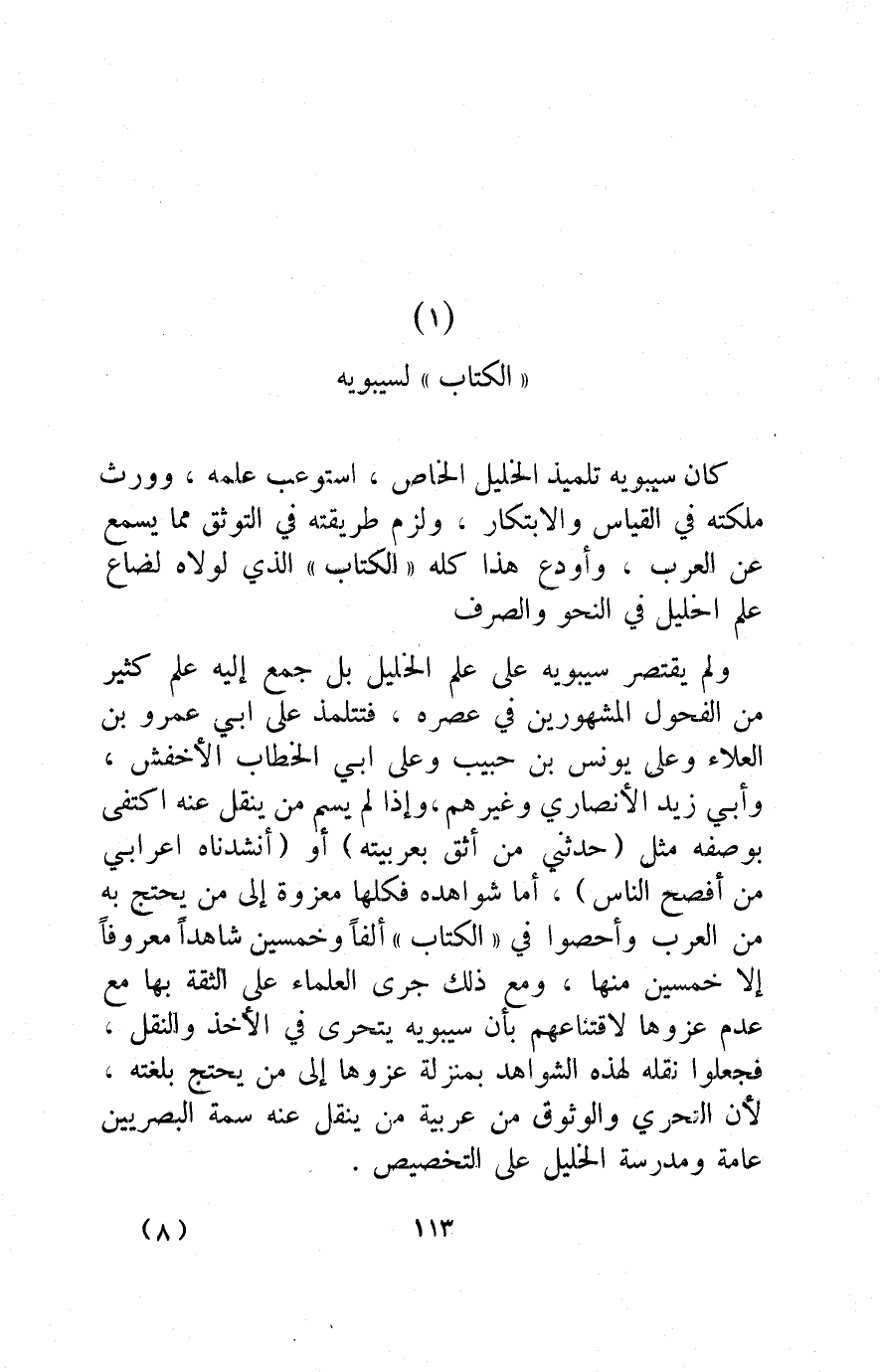 كان سيبويه تلميذ الخليل الخاص، استوعب علمه، وورث ملكته في القياس والابتكار، ولزم طريقته في التوثق مما يسمع عن العرب، وأودع هذا كله "الكتاب" الذي لولاه لضاع علم الخليل في النحو والصرف.