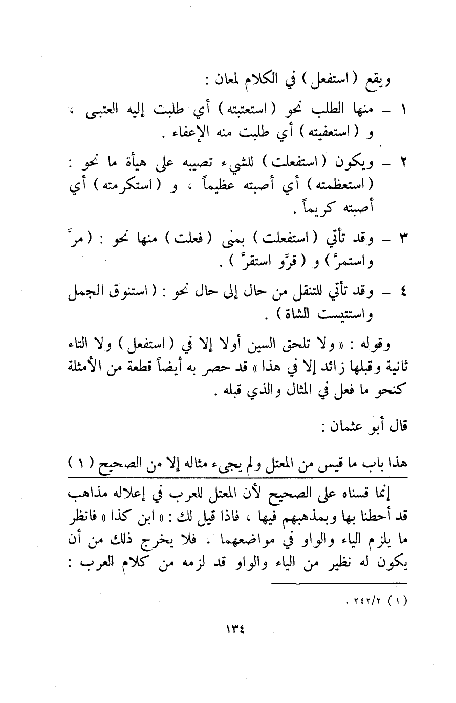 2- ويكون "استفعلت" للشيء تصيبه على هيئة ما نحو: "استعظمته" أي: أصبته عظيما، و"استكرمته" أي: أصبته كريما.