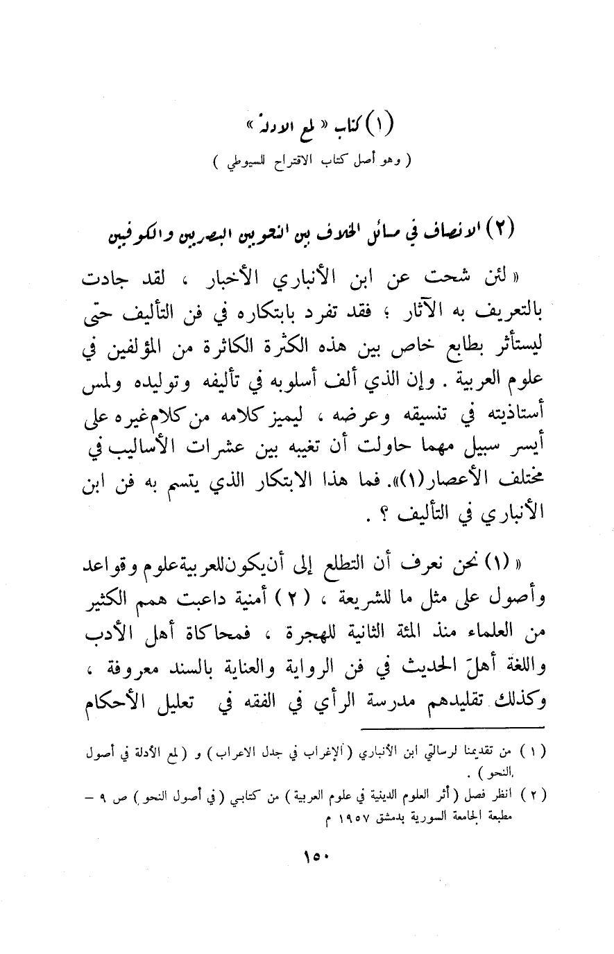 1 من تقديمنا لرسالتي ابن الأنباري "الإغراب في جدل الاعراب" و"لمع الأدلة في أصول النحو".