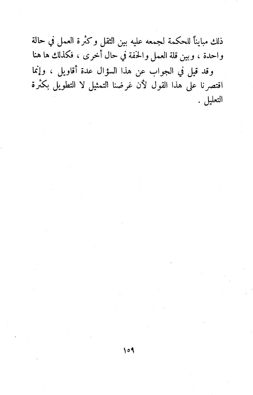 ذلك مباينا للحكمة لجمعه عليه بين الثقل وكثرة العمل في حالة واحدة، وبين قلة العمل والخفة في حال أخرى، فكذلك ههنا.