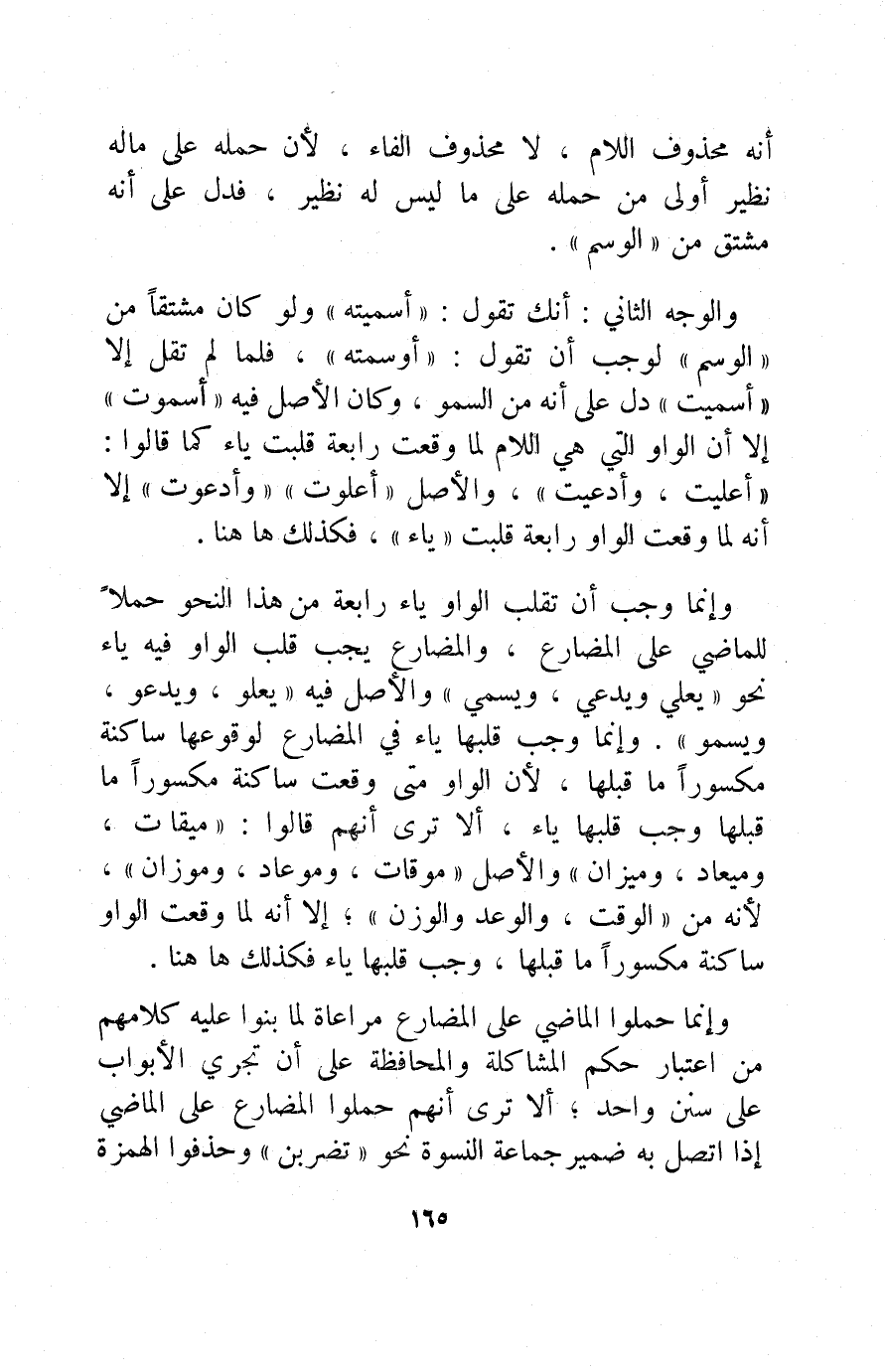 والوجه الثاني: أنك تقول: "أسميته" ولو كان مشتقا من "الوسم" لوجب أن تقول: "أوسمته"، فلما لم تقل إلا "أسميت" دل على أنه من السمو، وكان الأصل فيه "أسموت" إلا أن الواو التي هي اللام لما وقعت رابعة قلبت ياء كما قالوا: "أعليت، وأدعيت"، والأصل "أعلوت" "وأدعوت" إلا أنه لما وقعت الواو رابعة قلبت "ياء"، فكذلك ههنا.