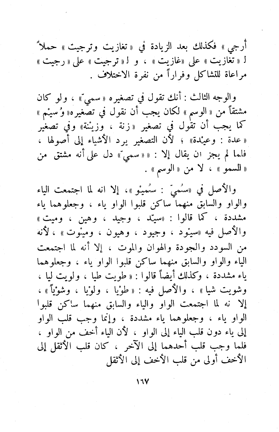 أرجي" فكذلك بعد الزيادة في "تغازيت وترجيت" حملا لـ "تغازيت" على "غازيت"، ولـ "ترجيت" على "رجيت" مراعاة للتشاكل, وفرارا من نفرة الاختلاف.