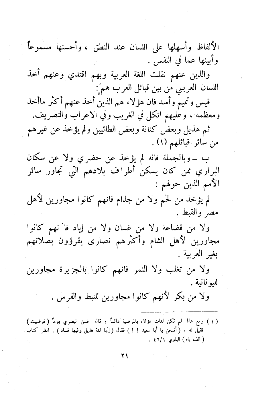 ب- وبالجملة فإنه لم يؤخذ عن حضري ولا عن سكان البراري ممن كان يسكن أطراف بلادهم التي تجاور سائر الأمم الذين حولهم: