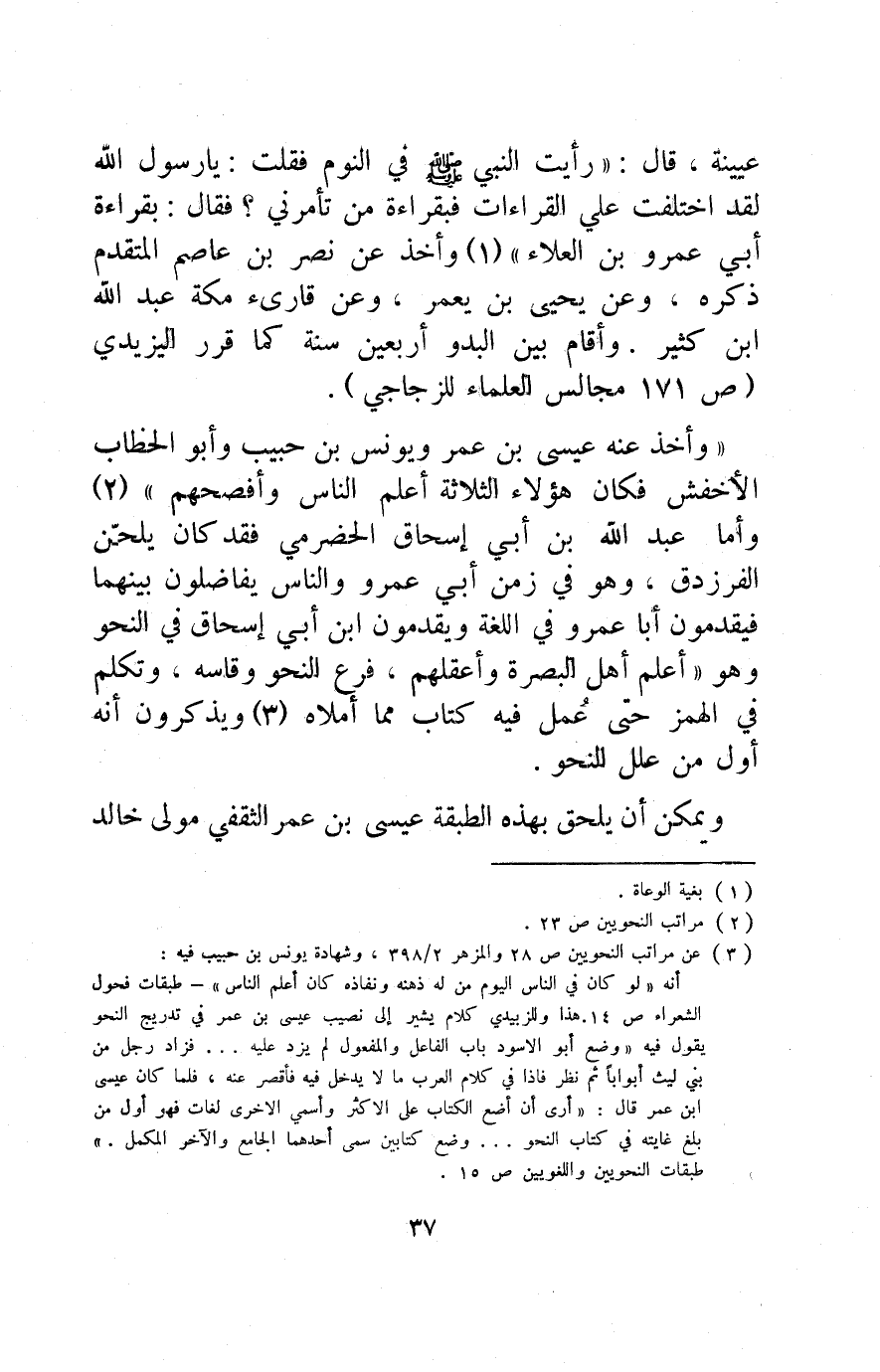3 عن مراتب النحويين ص28 والمزهر 2/ 398، وشهادة يونس بن حبيب فيه: