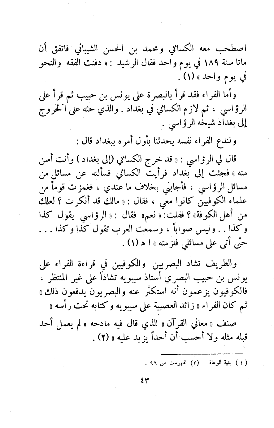 ولندع الفراء نفسه يحدثنا بأول أمره ببغداد قال: