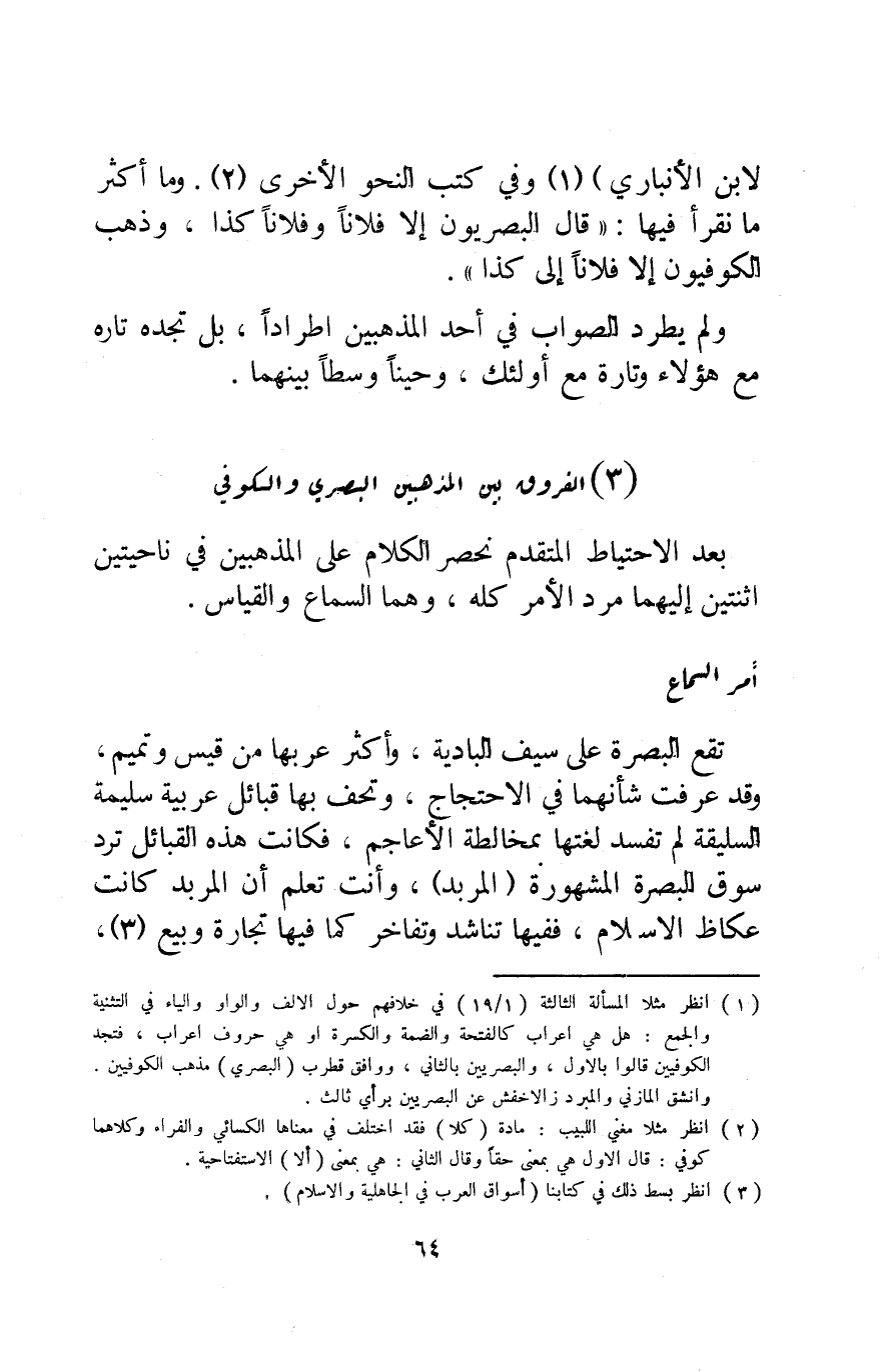 لابن الأنباري"1 وفي كتب النحو الأخرى2. وما أكثر ما نقرأ فيها: "قال البصريون إلا فلانا وفلانا كذا، وذهب الكوفيون إلا فلانا إلى كذا".