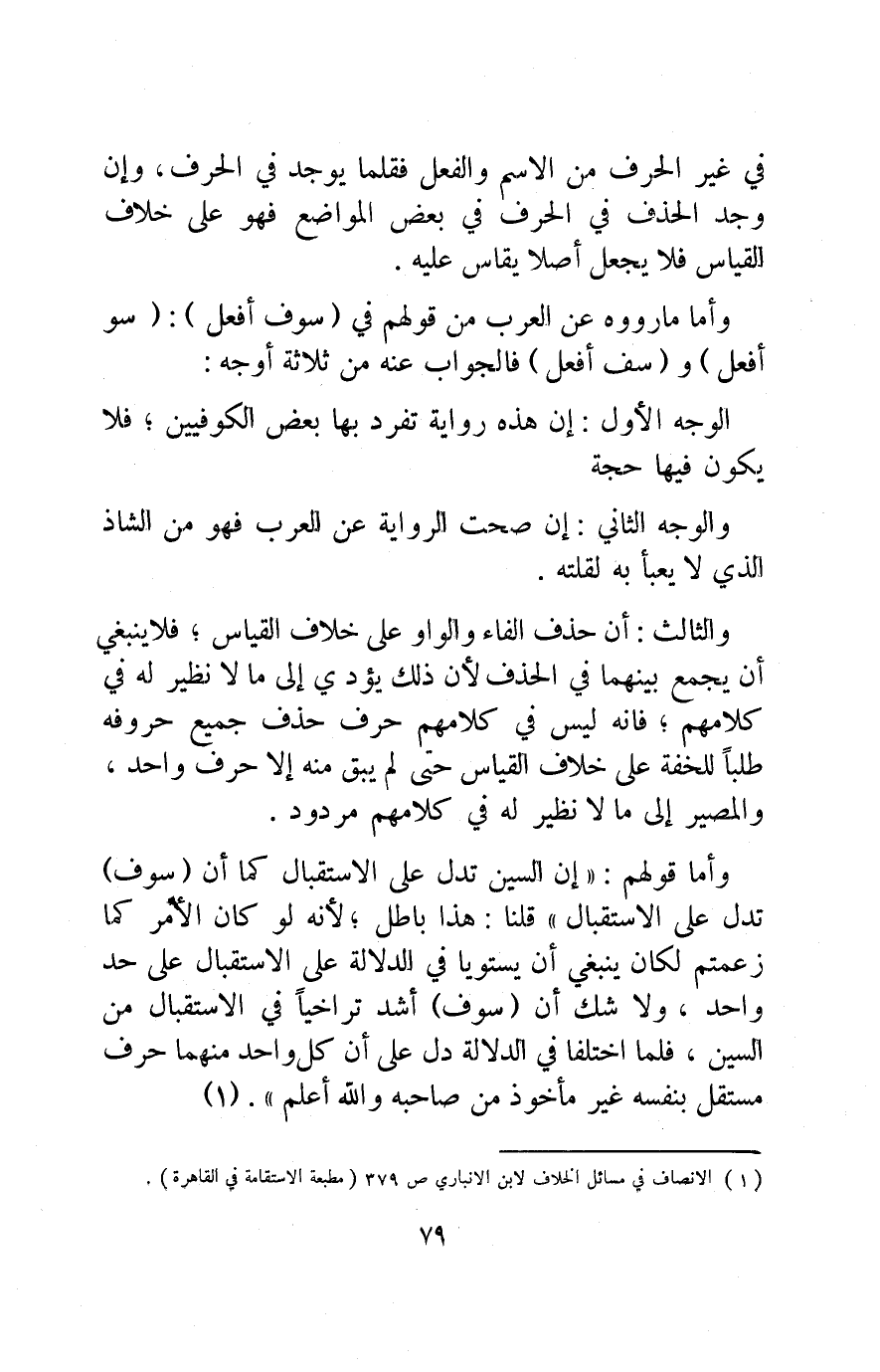 1 الإنصاف في مسائل الخلاف لابن الأنباري ص379 "مطبعة الاستقامة في القاهرة".