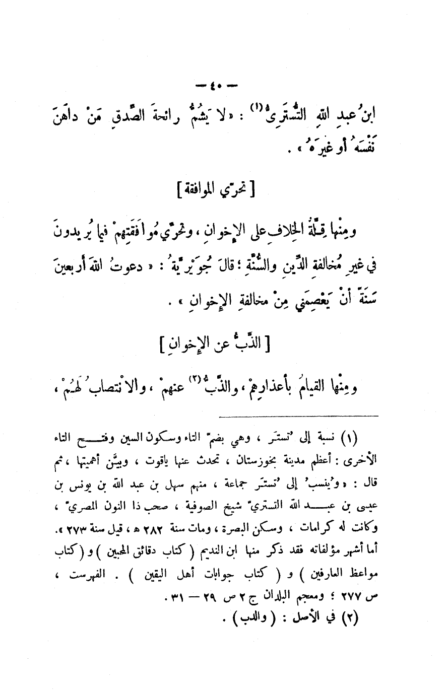 بن عبد الله التستري: (لا يشم رائحة الصدق من داهن نفسه أو غيره) .