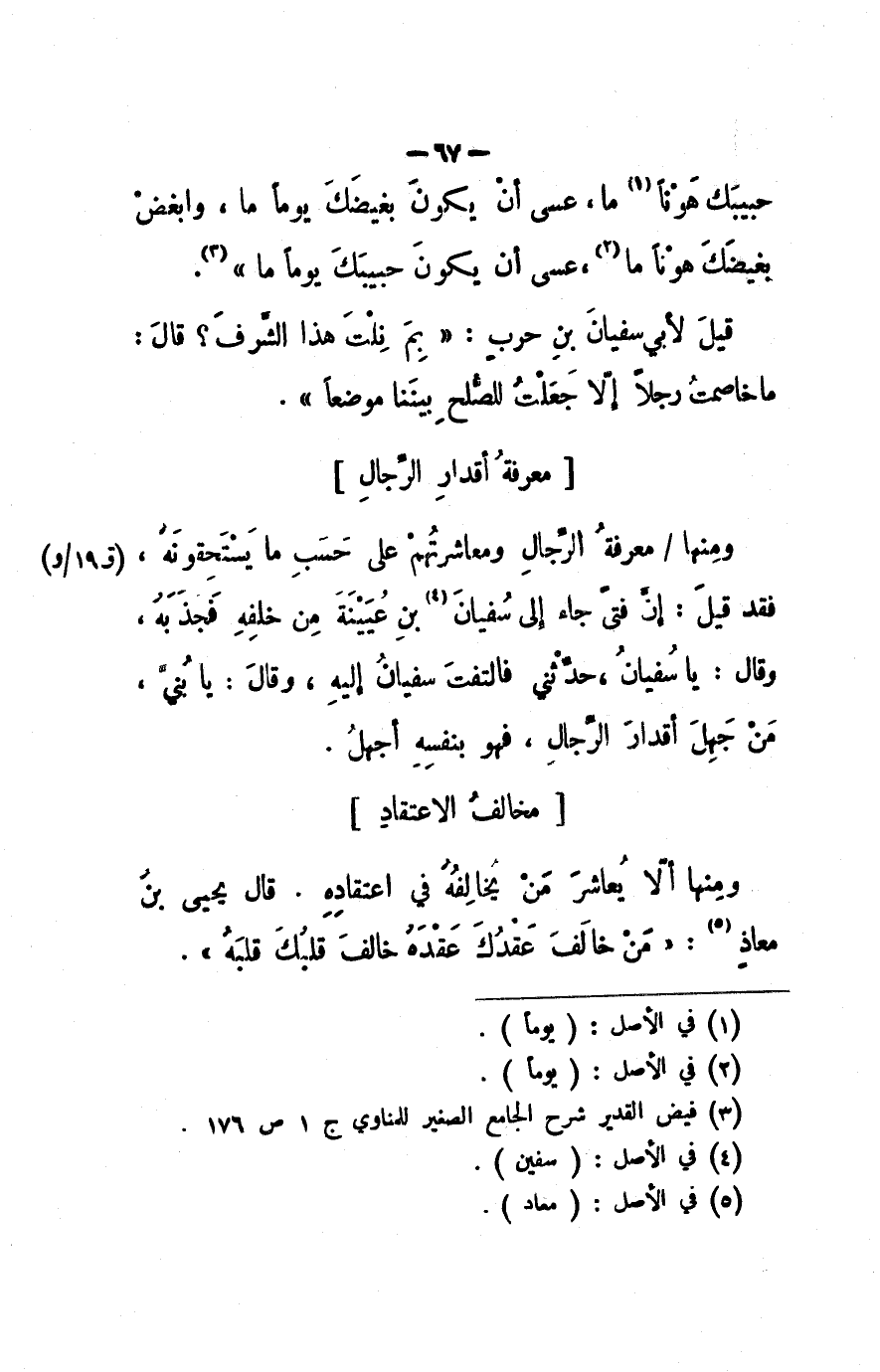 حبيبك هوناً ما، عسى أن يكون بغيضك يوماً ما، وابغض بغيضك هوناً ما، عسى أن يكون حبيبك يوماً ما) .