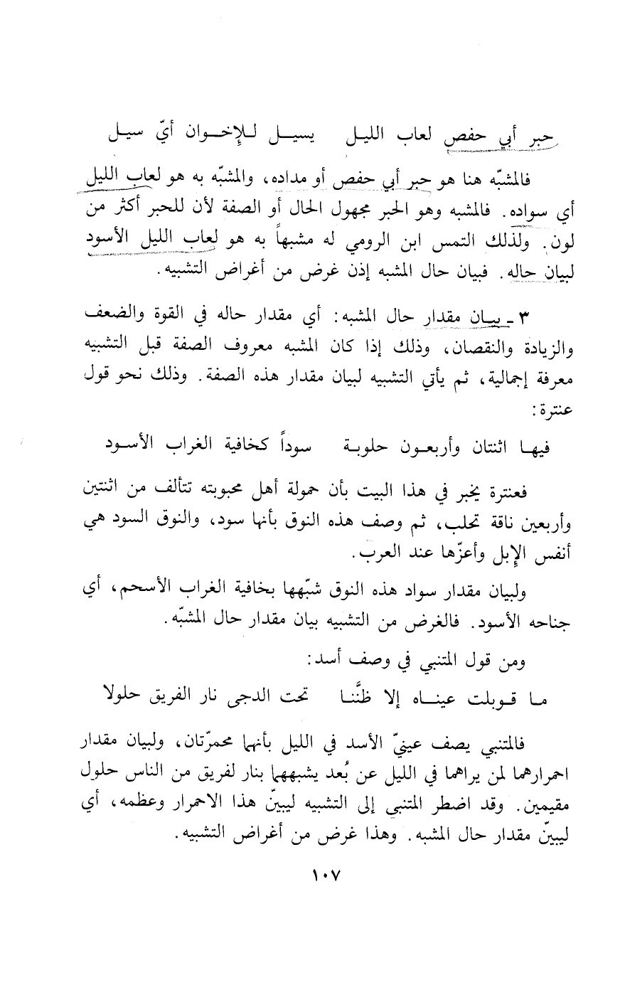 ولبيان مقدار سواد هذه النوق شبّهها بخافية الغراب الأسحم، أي جناحه الأسود. فالغرض من التشبيه بيان مقدار حال المشبّه.