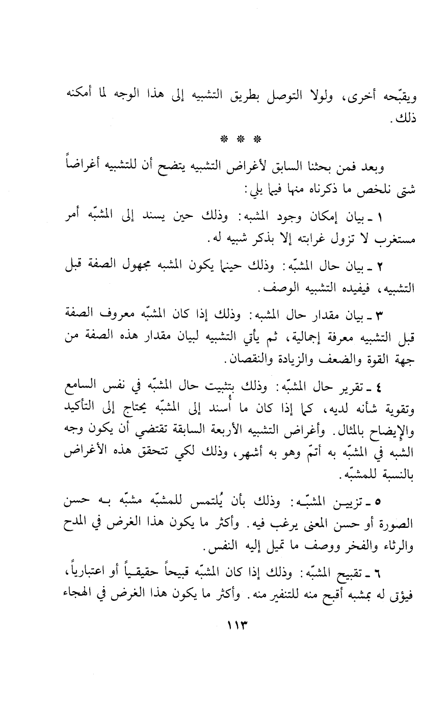 وبعد فمن بحثنا السابق لأغراض التشبيه يتضح أن للتشبيه أغراضا شتى نلخص ما ذكرناه منها فيما يلي: