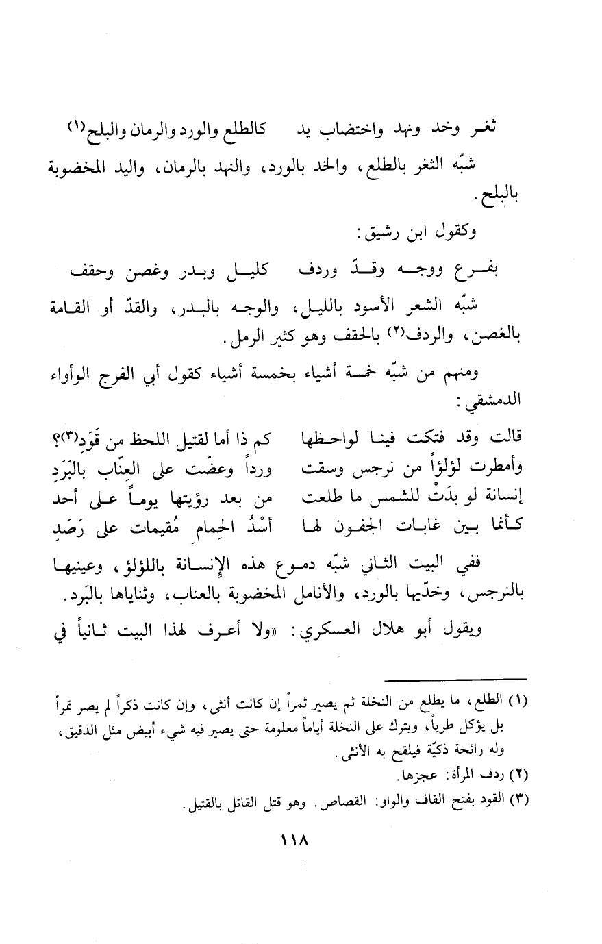 شبّه الشعر الأسود بالليل، والوجه بالبدر، والقدّ أو القامة بالغصن، والردف (¬2) بالحقف وهو كثير الرمل.