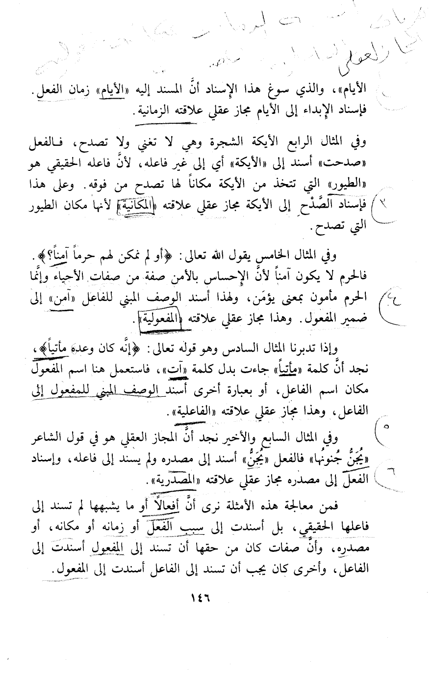 فمن معالجة هذه الأمثلة نرى أنّ أفعالا أو ما يشبهها لم تسند إلى فاعلها الحقيقي، بل أسندت إلى سبب الفعل أو زمانه أو مكانه، أو مصدره، وأنّ صفات كان من حقها أن تسند إلى المفعول أسندت إلى الفاعل، وأخرى كان يجب أن تسند إلى الفاعل أسندت إلى المفعول.