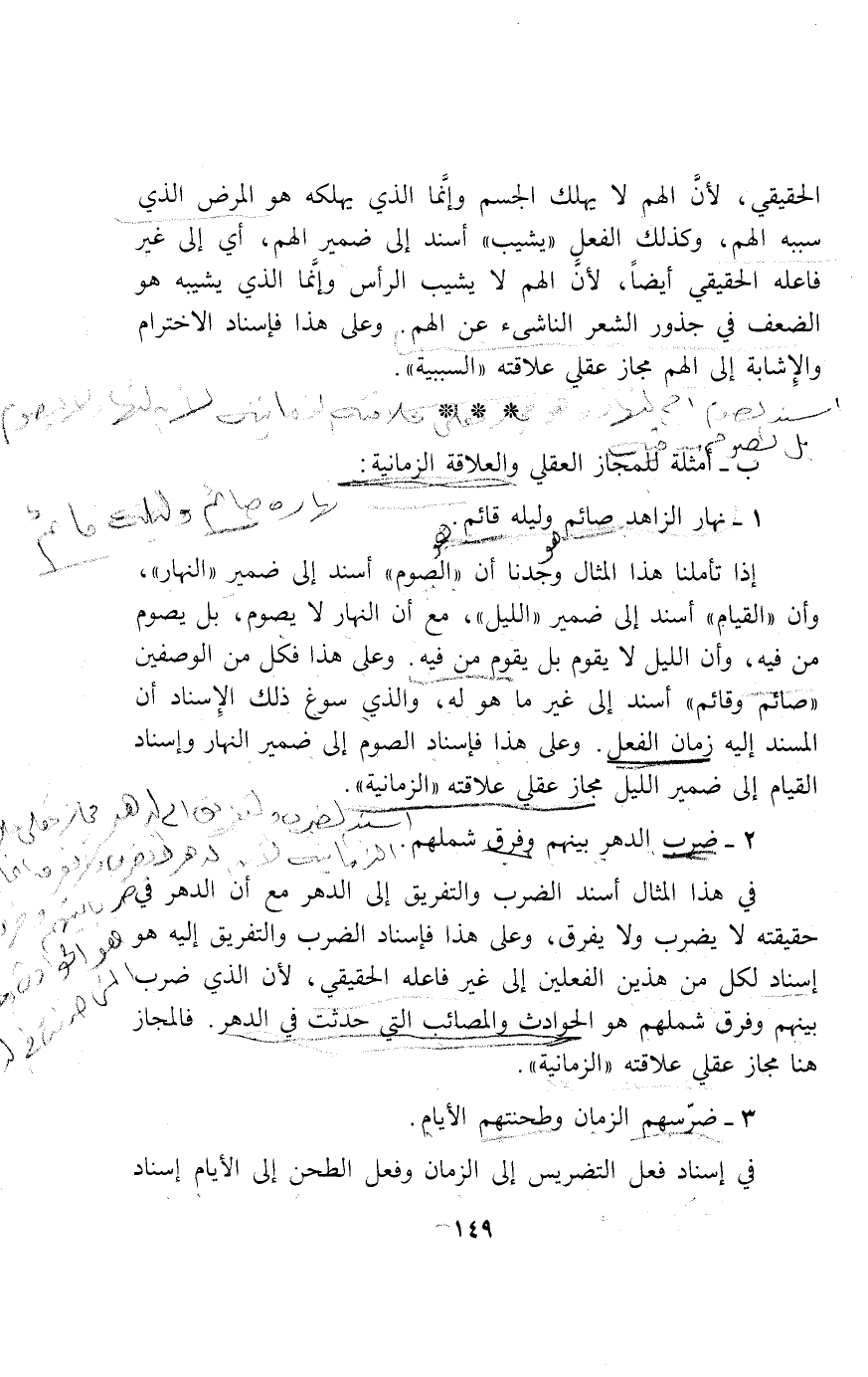 ب- أمثلة للمجاز العقلي والعلاقة الزمانية: