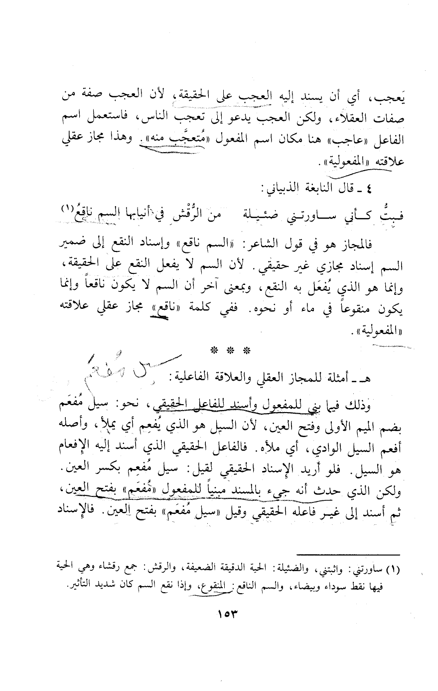 في ماء أو نحوه. ففي كلمة «ناقع» مجاز عقلي علاقته «المفعولية».