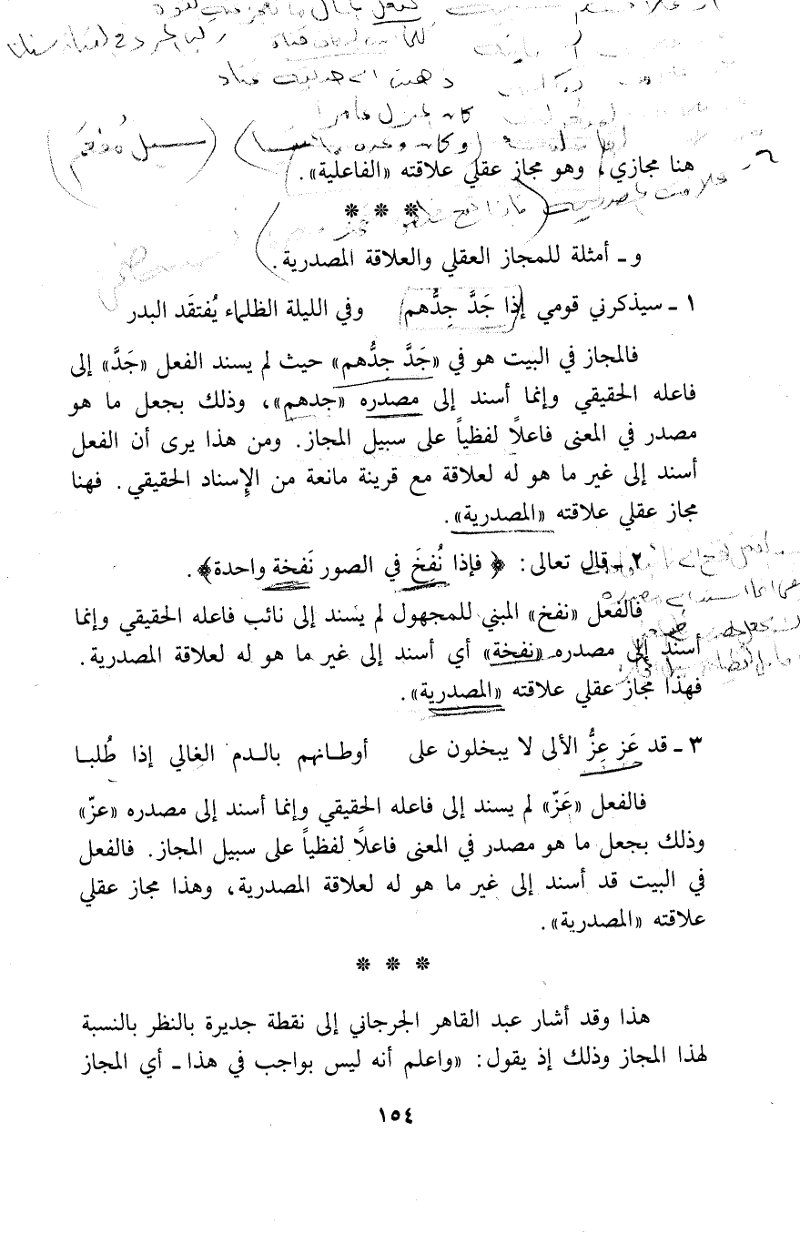 و- أمثلة للمجاز العقلي والعلاقة المصدرية.