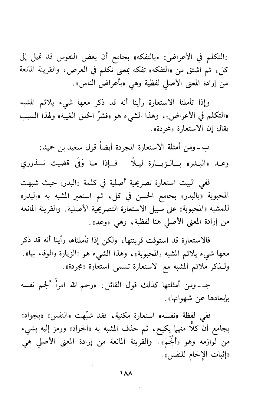 ب- ومن أمثلة الاستعارة المجردة أيضا قول سعيد بن حميد:
